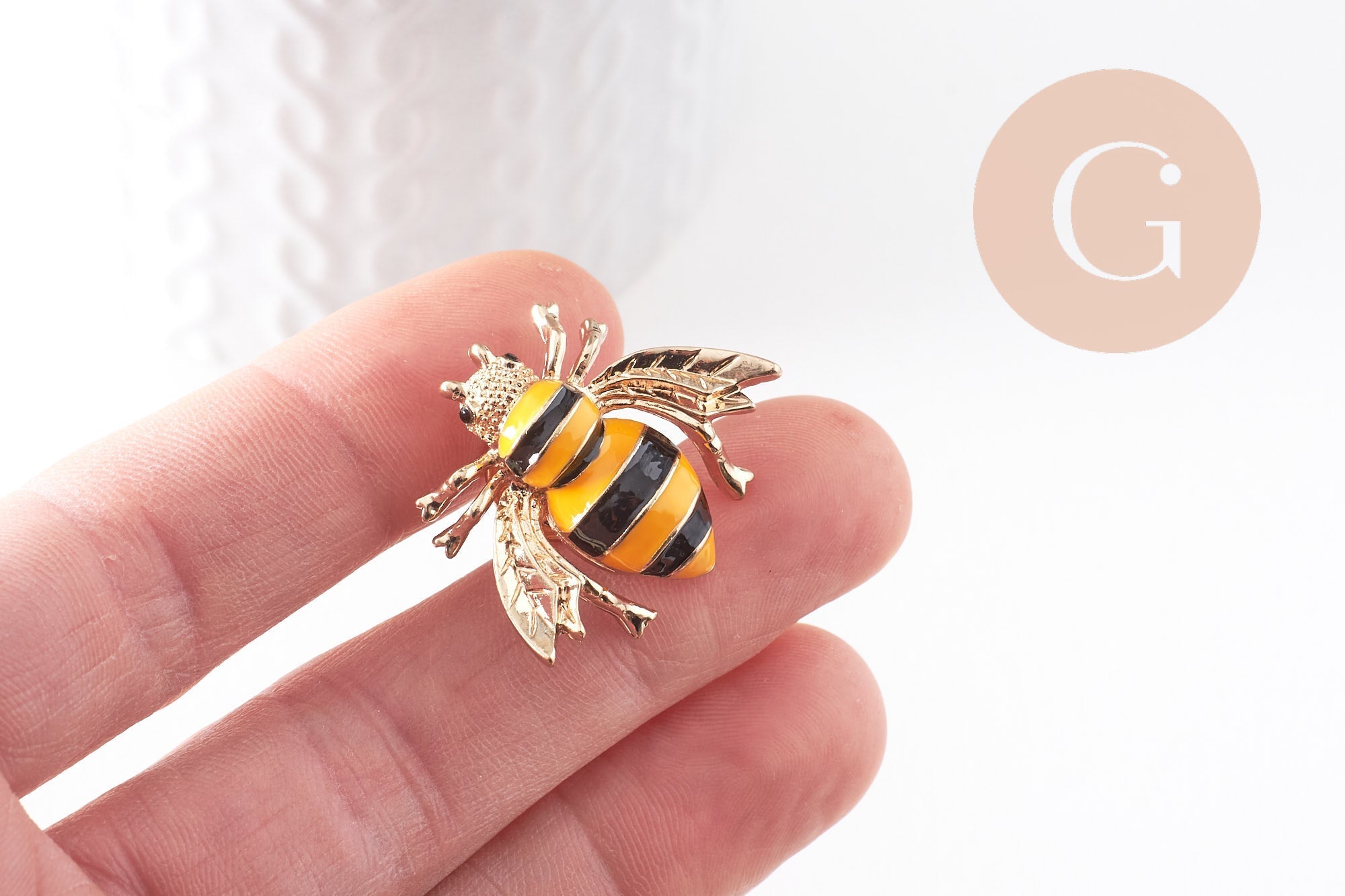 We offer you this delightful brooch representing a delicate bee , in gold zamac and yellow and black enamel .