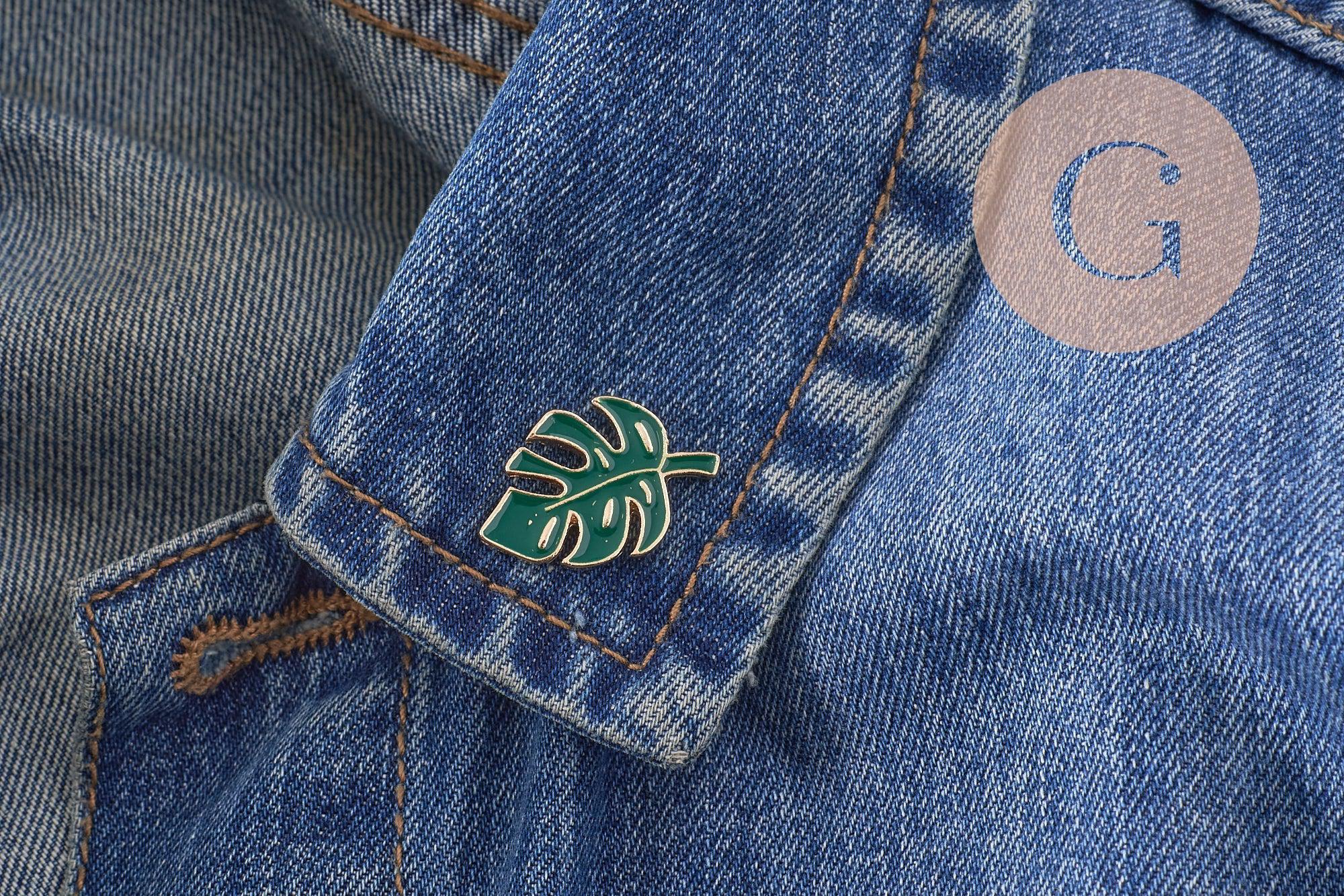 Gingerlily invites you to fall in love with this delightful brooch / pin representing a Monsterosa plant leaf , in gold zamac and green colored enamel.