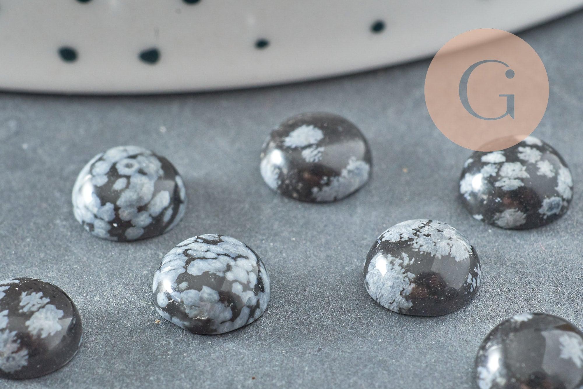 Natural polished snowflake obsidian cabochon 8mm diameter