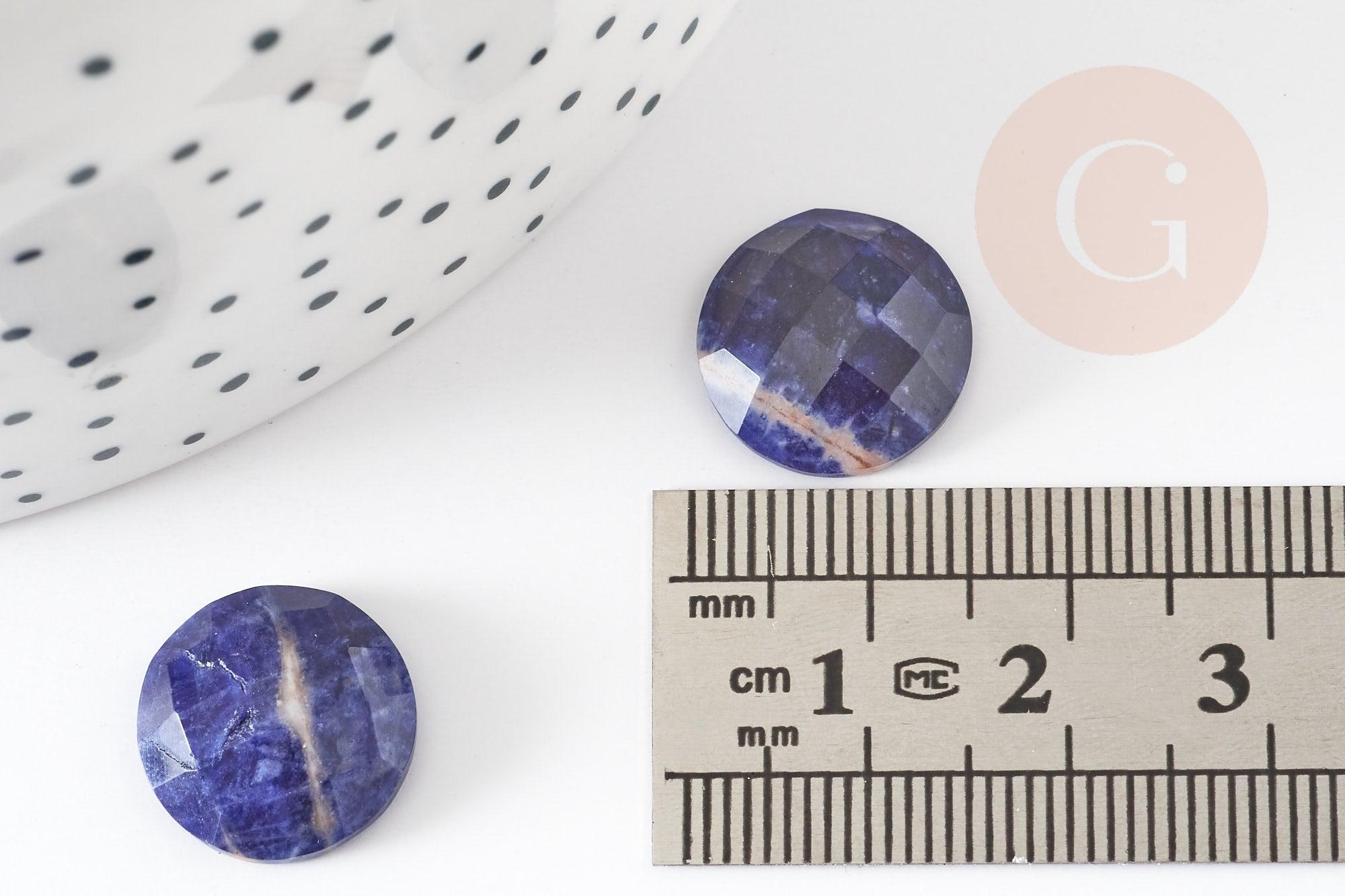 Cabochon rond sodalite bleue naturelle facetté 14.5mm, x1 (G2305)