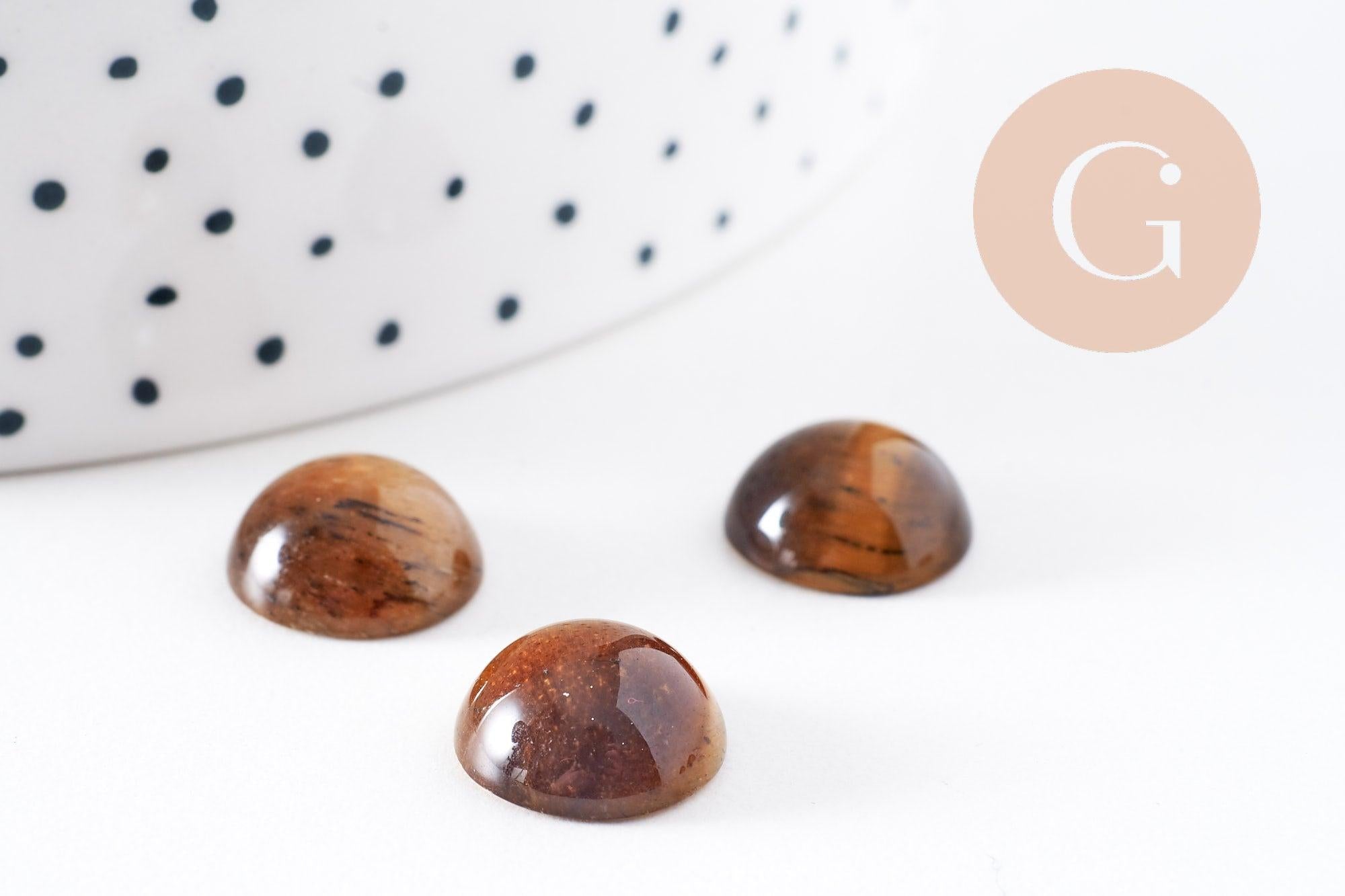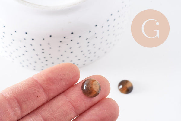 Cabochon rond œil de tigre naturel marron 12mm, x1 (G10067)