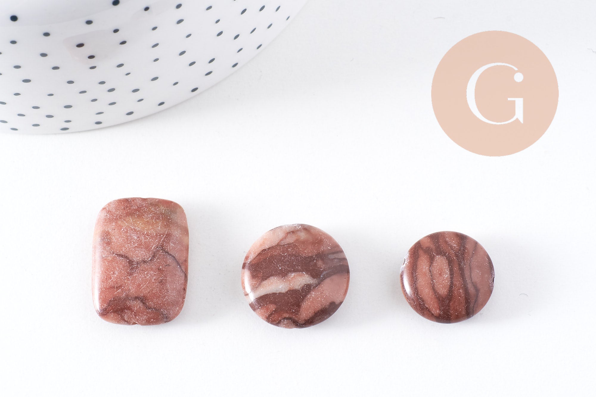 Enhance your creations with these natural brown zebra jasper beads , each unique in its shape and veining. This set of 5 beads offers a mix of varied shapes (small and large discs, rectangular), ideal for giving character to your DIY jewelry.