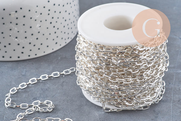 Add a modern and elegant touch to your creations with this rectangular link chain in silver-plated 304 stainless steel . Its fine, elongated links and clean design make it a perfect base for your trendy necklaces, bracelets, or long necklaces.