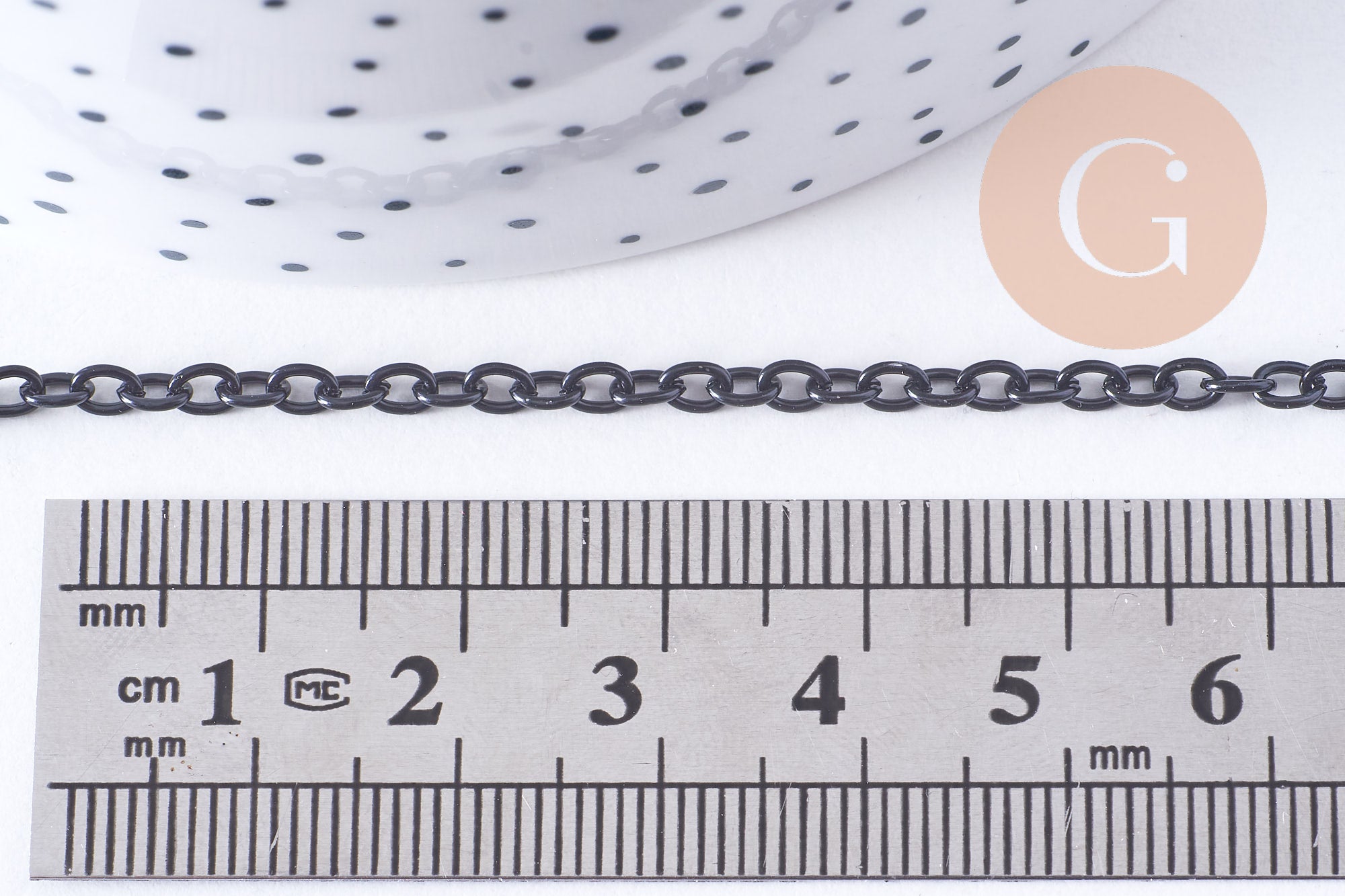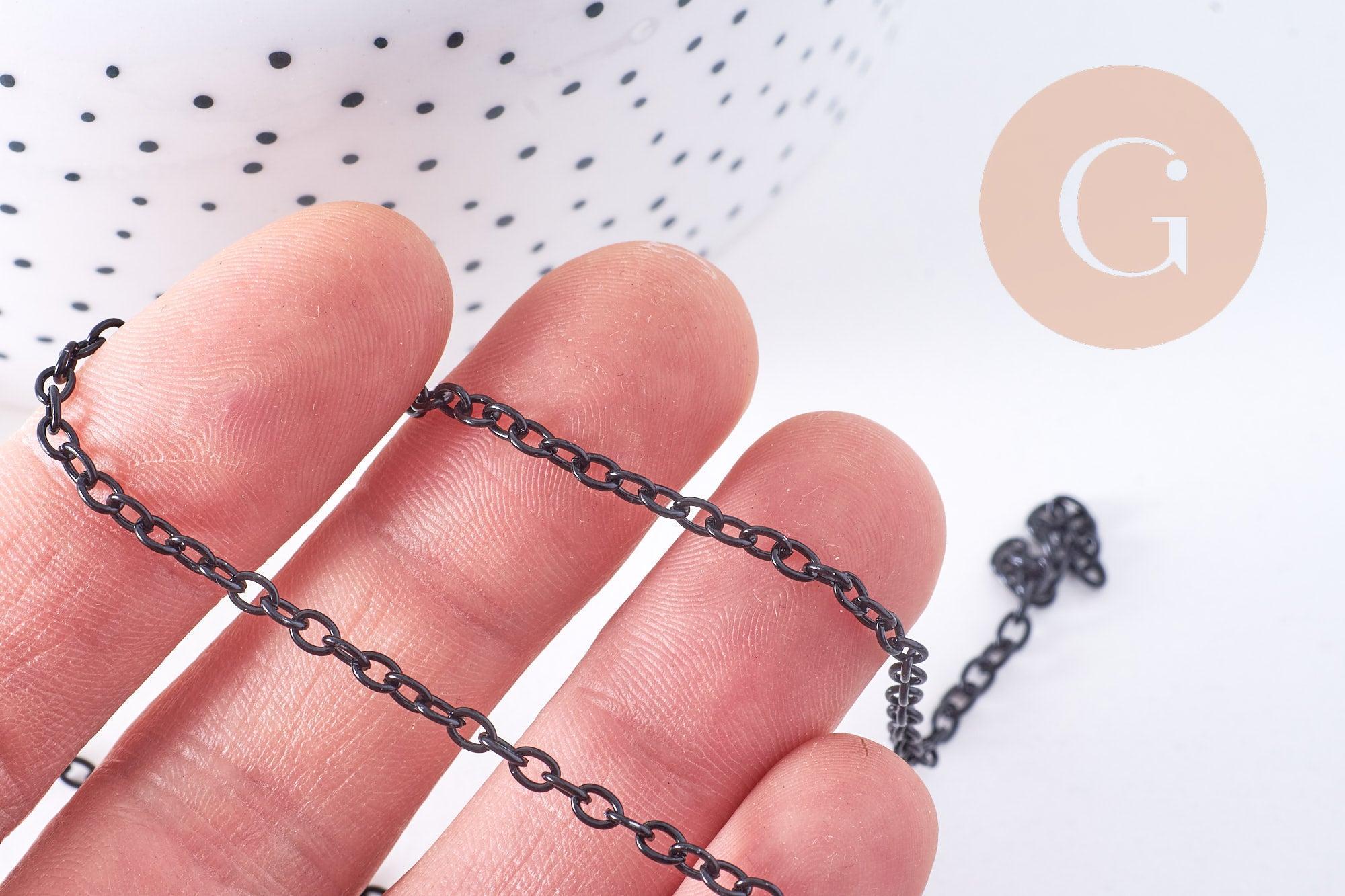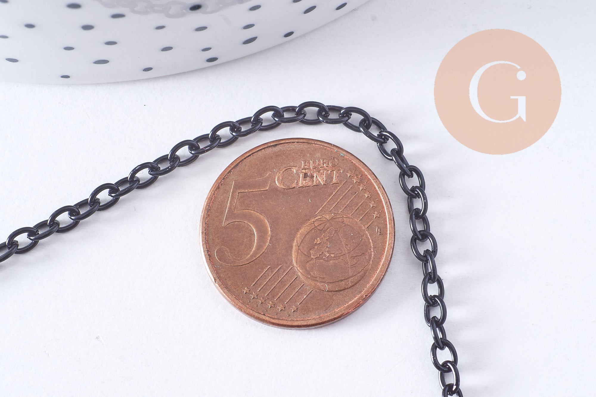 Bring an urban and contemporary touch to your creations with this intense black iron curb chain . Its classic oval link revisited in deep black makes it an ideal base for all your DIY jewelry projects, from minimalist necklaces to rock bracelets.
