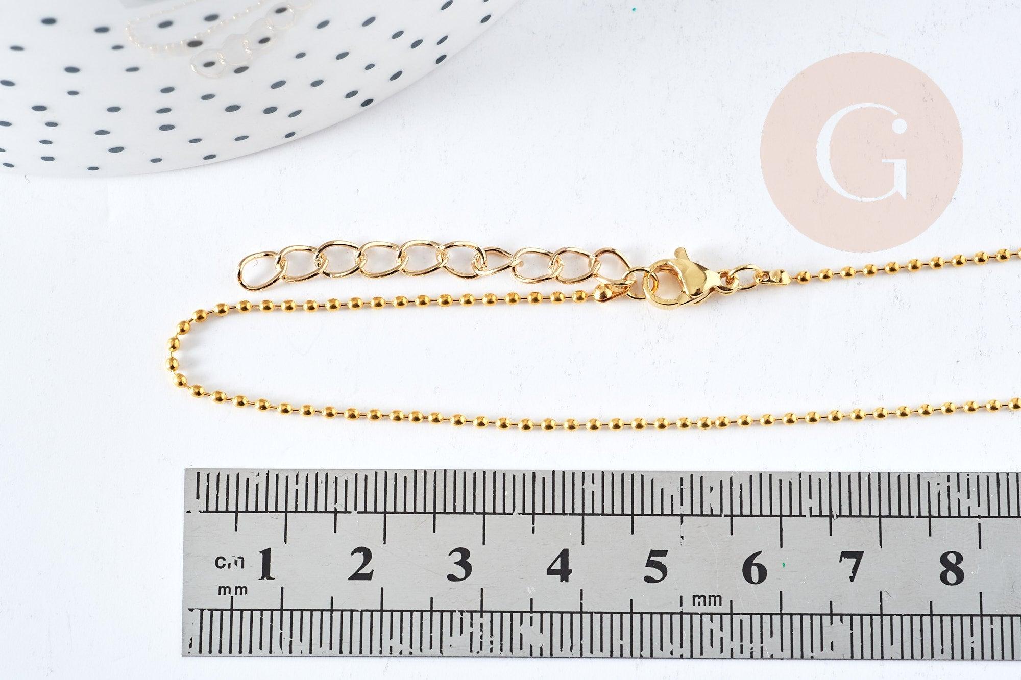 Discover this magnificent fine golden brass chain , made up of successive beads for a delicate and feminine choker. This complete 1.5 mm diameter chain is ideal for creating DIY fancy necklaces.