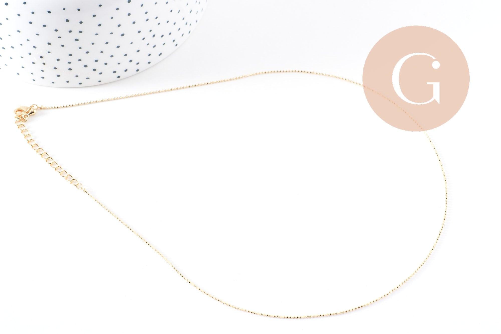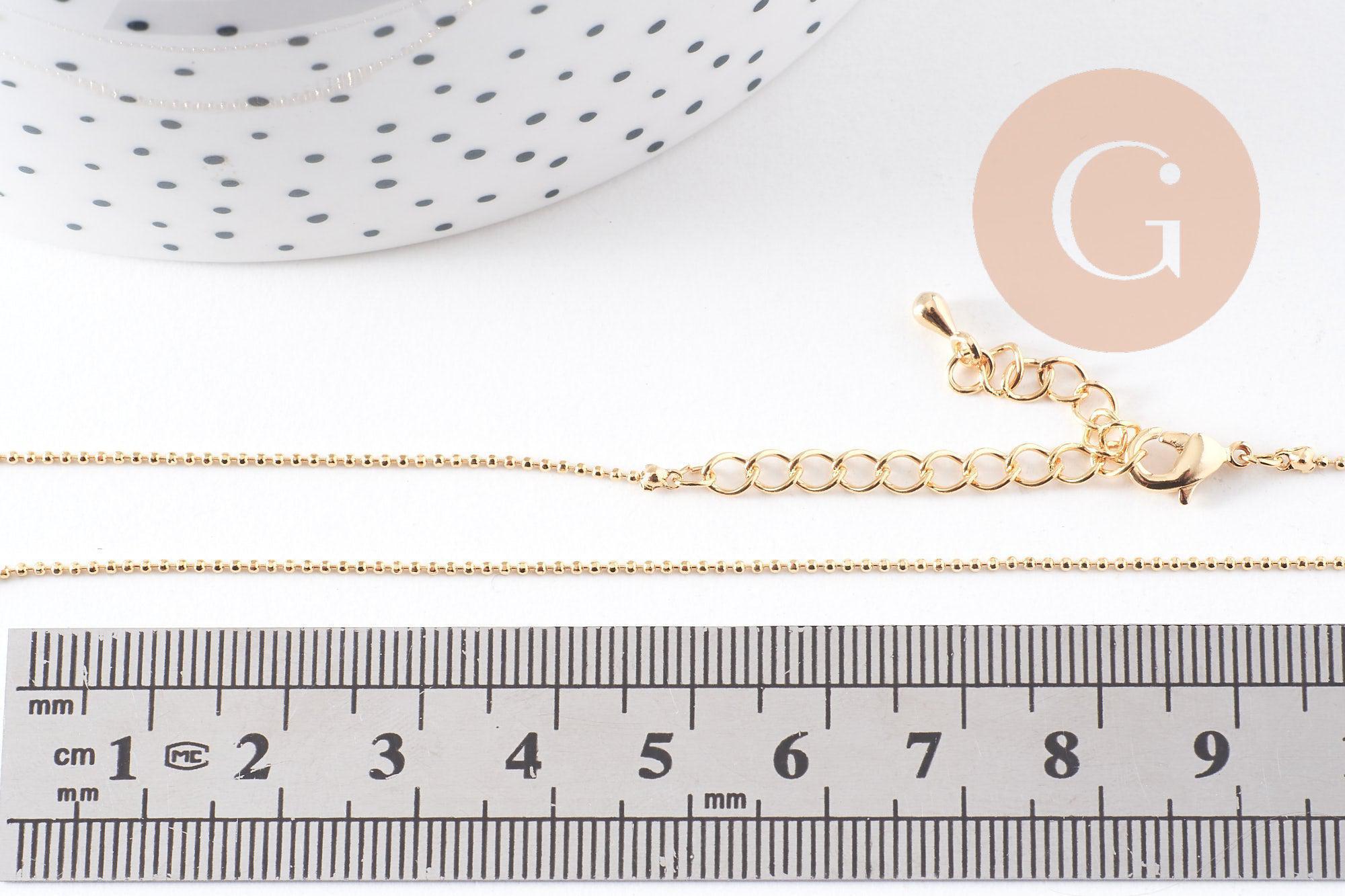 Chaine fine dorée boule 16K 2.5microns,chaine collier, chaine dorée chaine complète,chaine dorée,1mm,45cm, x1 (G0637)
