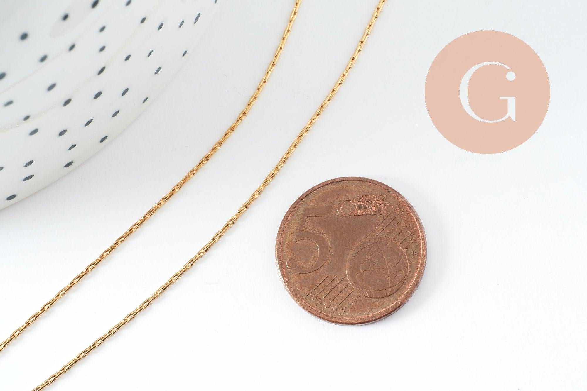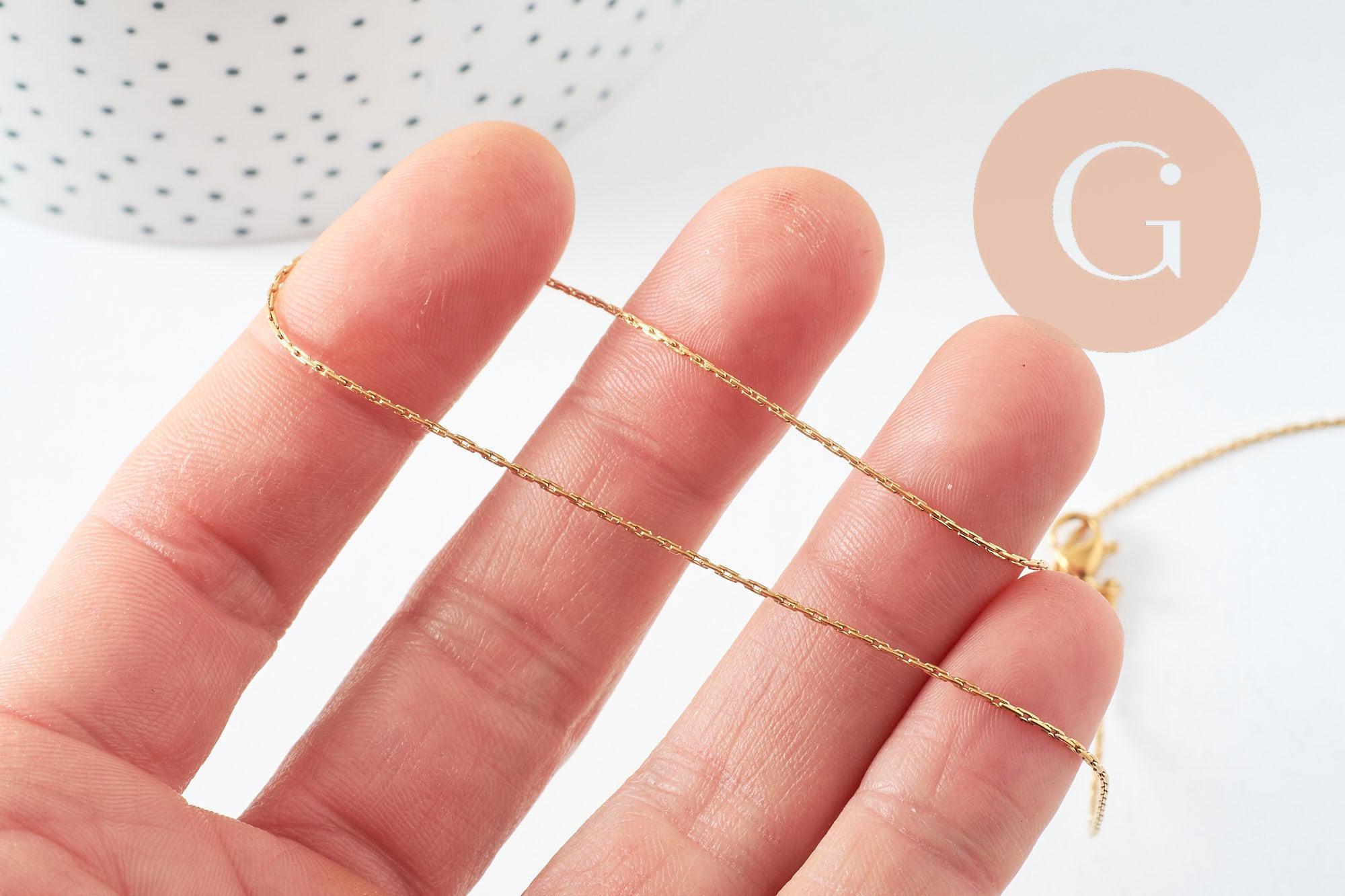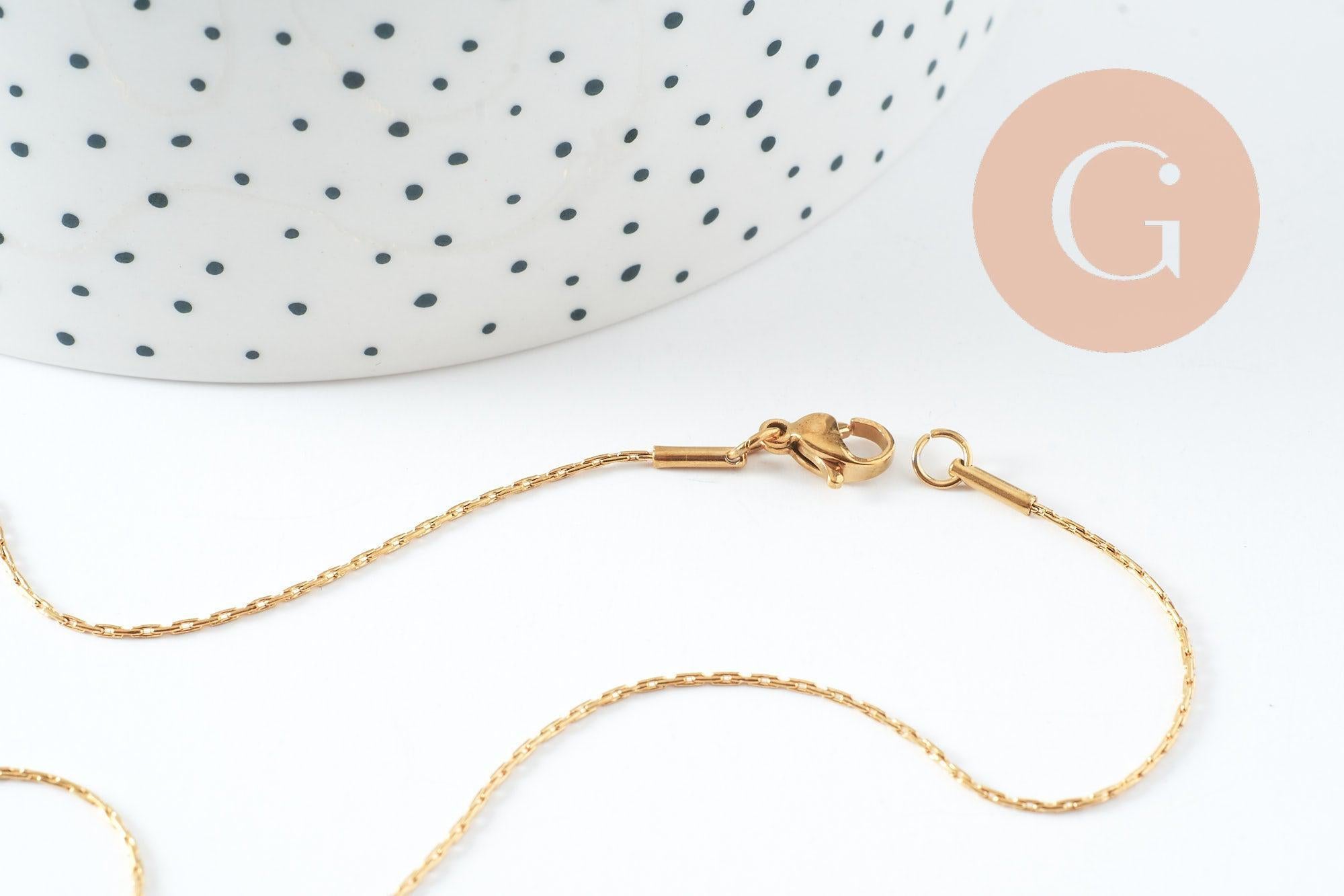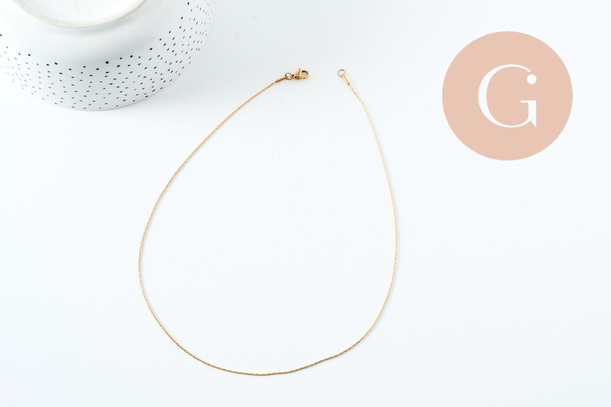 With its thin and elegant design (1 mm thick), it measures 45 cm and is perfect for minimalist necklaces or to add a personalized pendant. Its gold-plated stainless steel guarantees great durability and a brilliant shine over time.