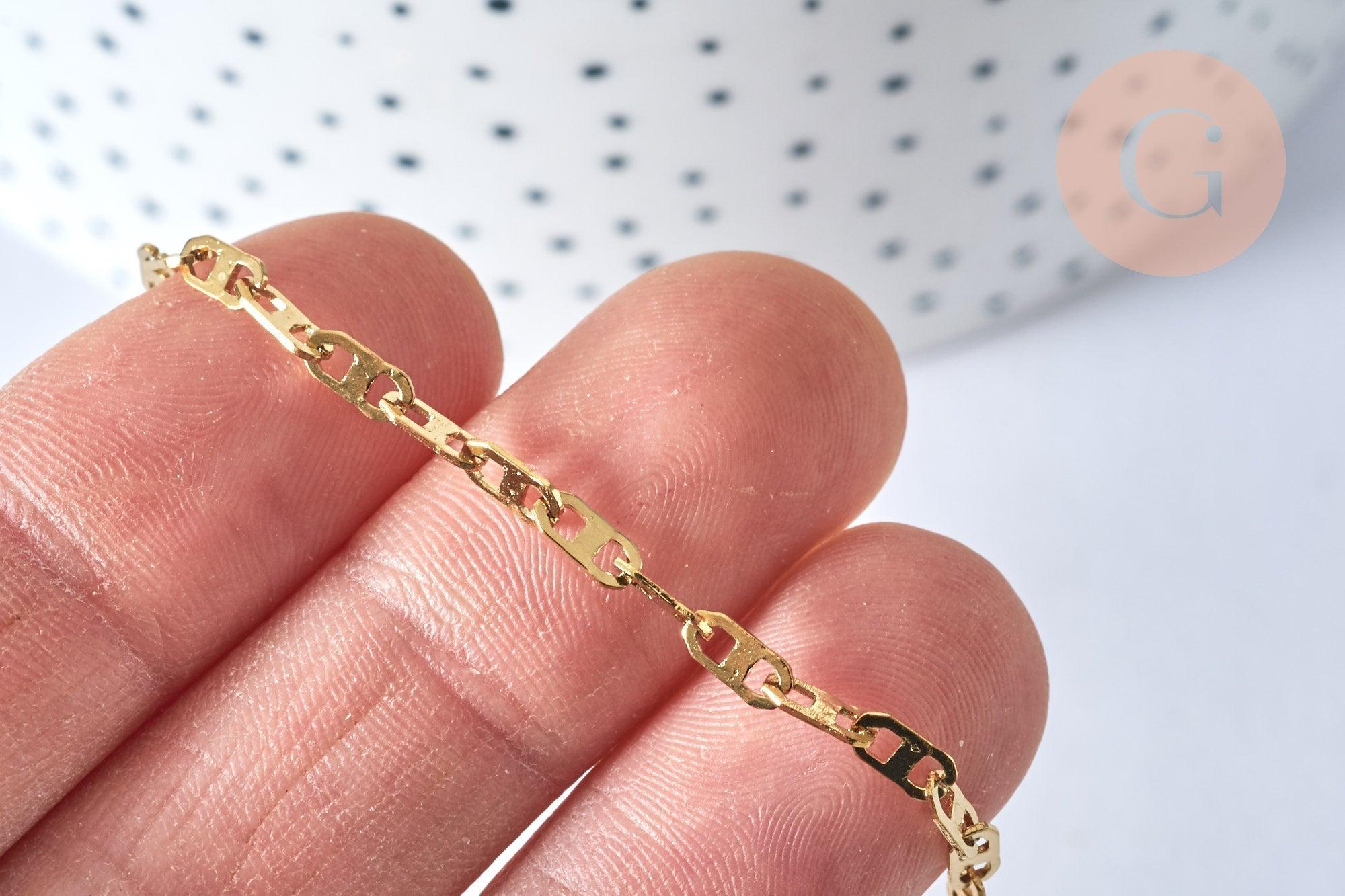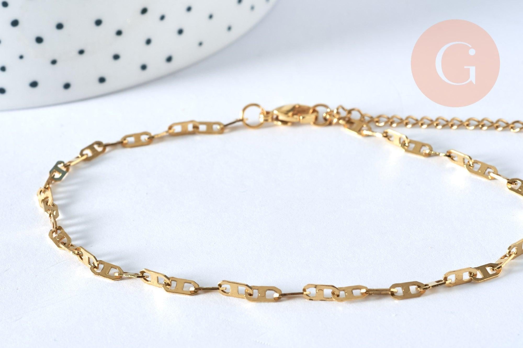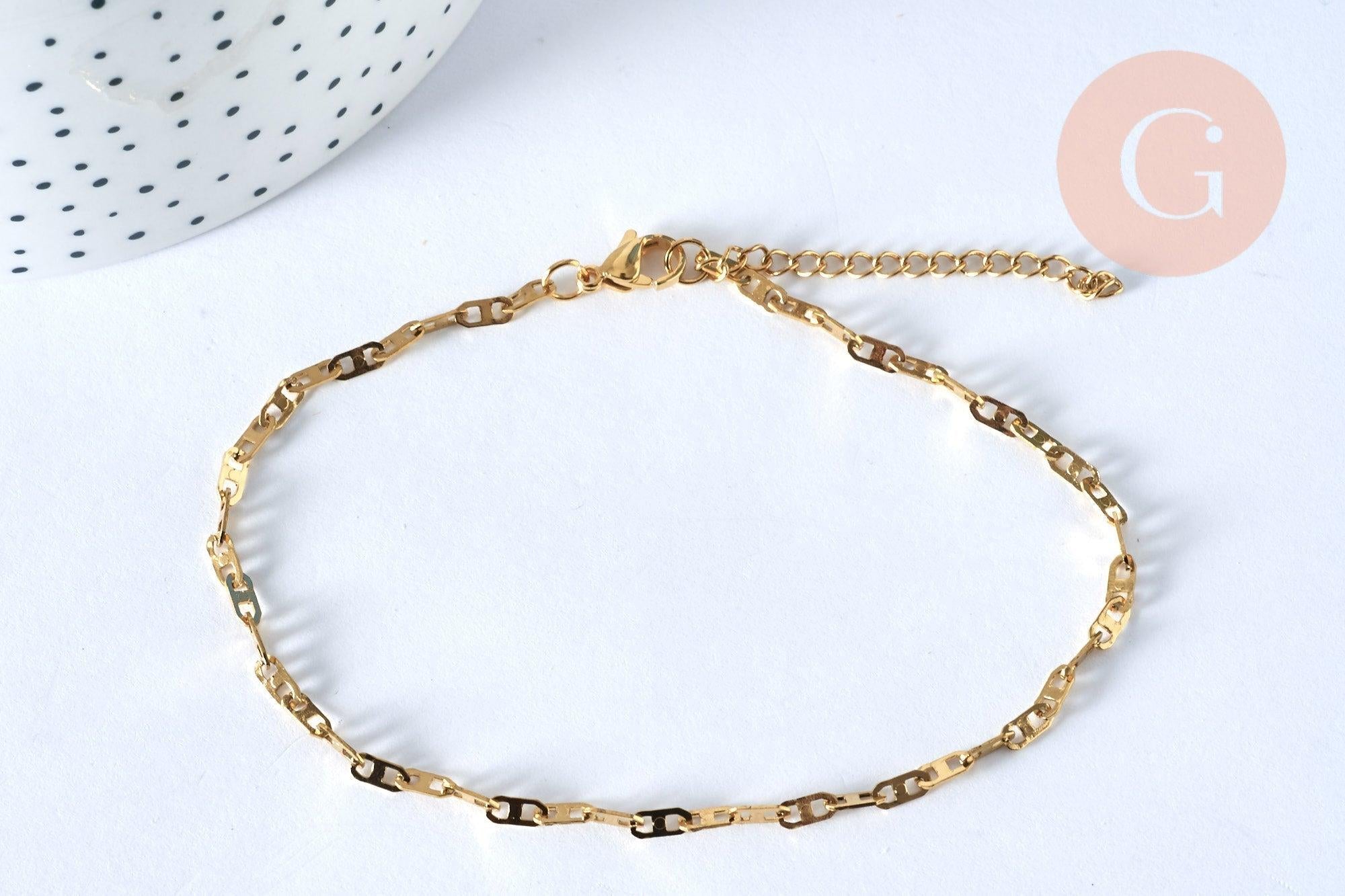 A feminine ankle chain in 14k gold-plated steel with a marine mesh