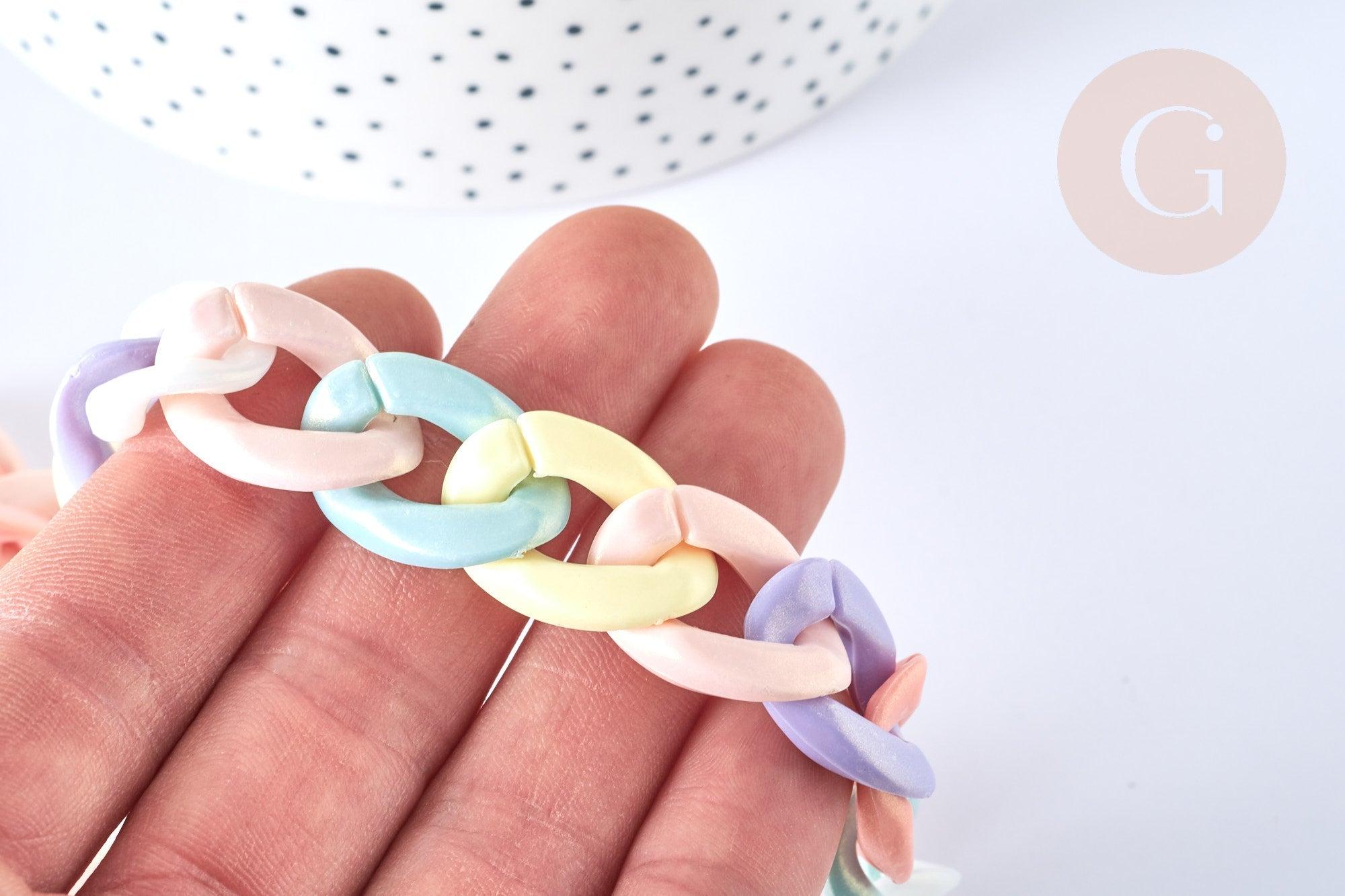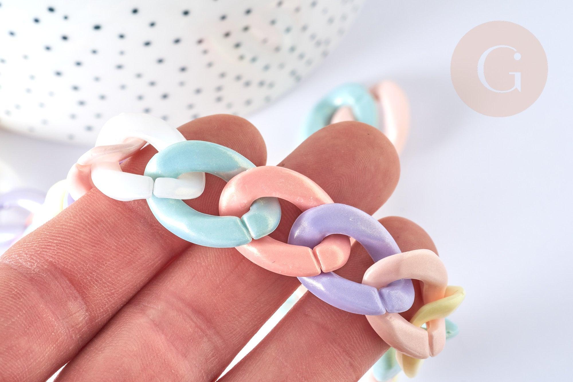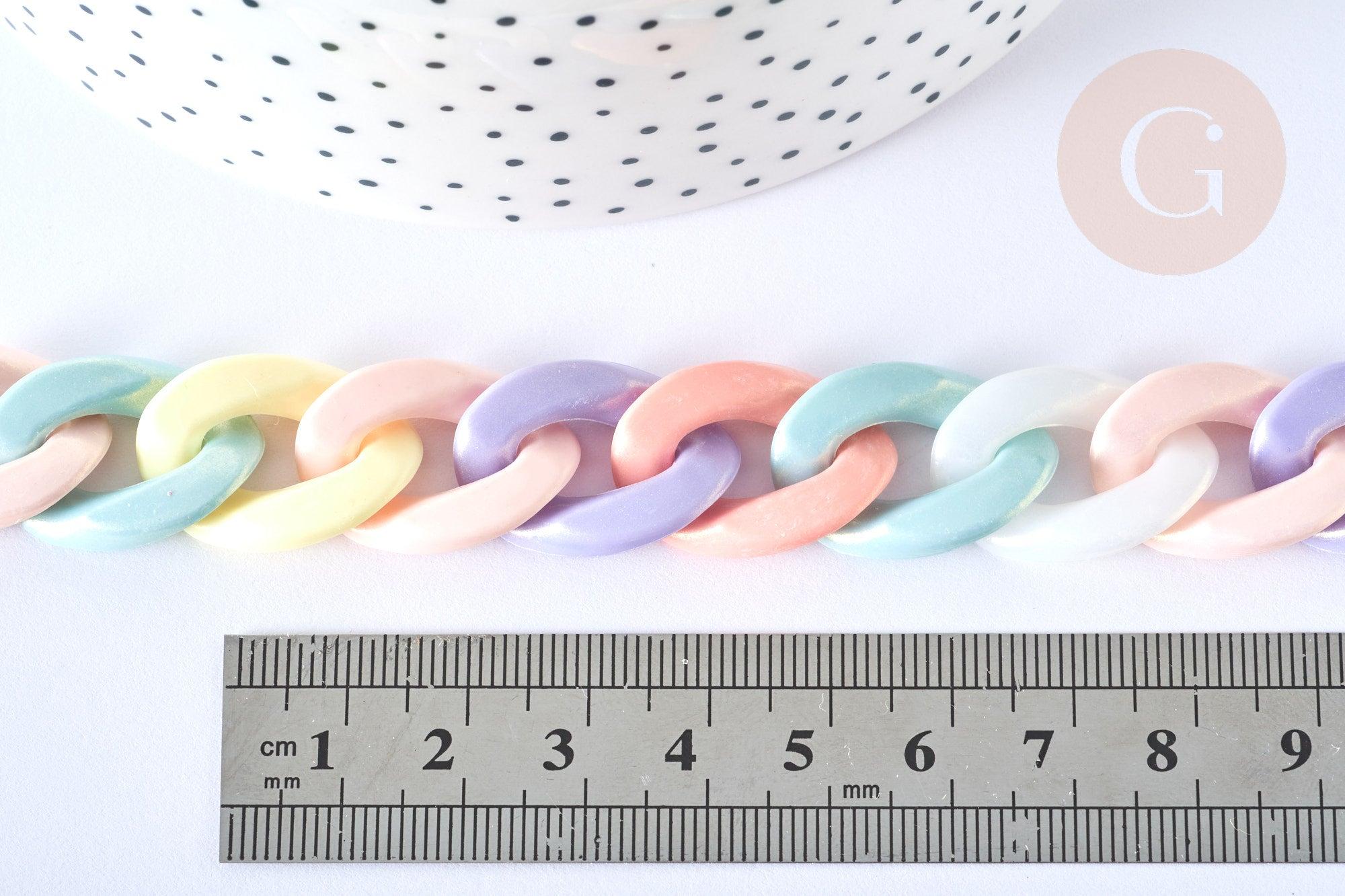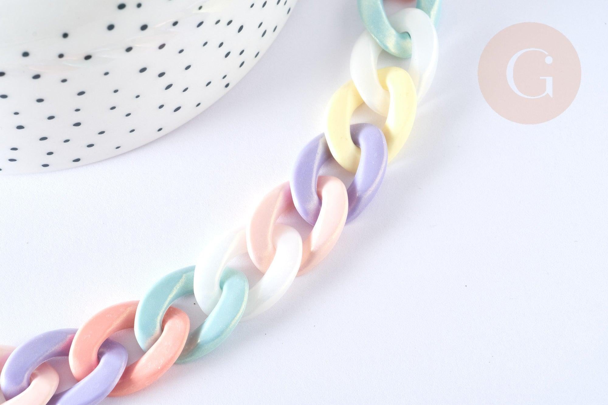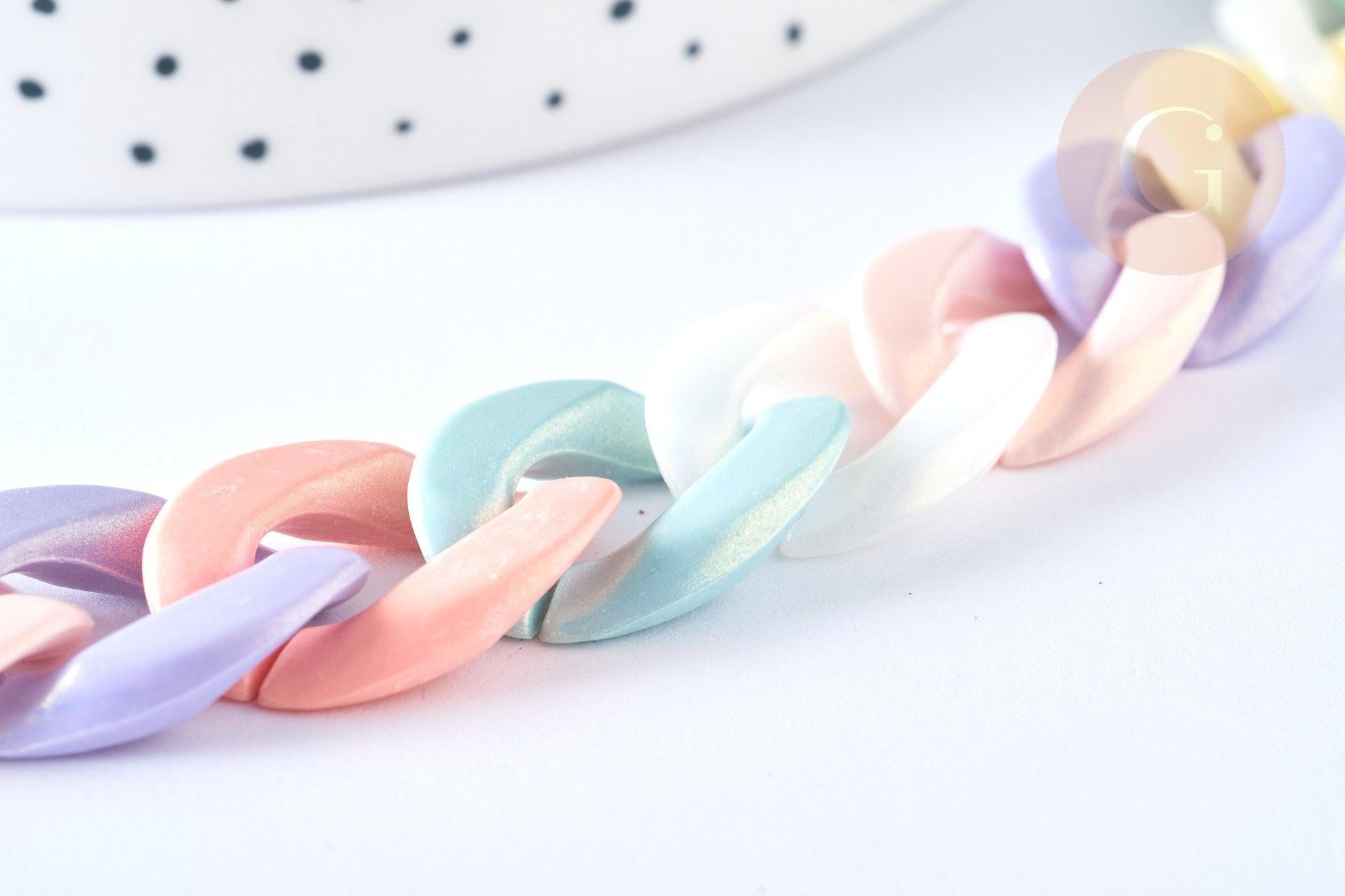 Adopt this acrylic chain with large twisted links that can be detached, to create accessories as well as XXL costume jewelry .
