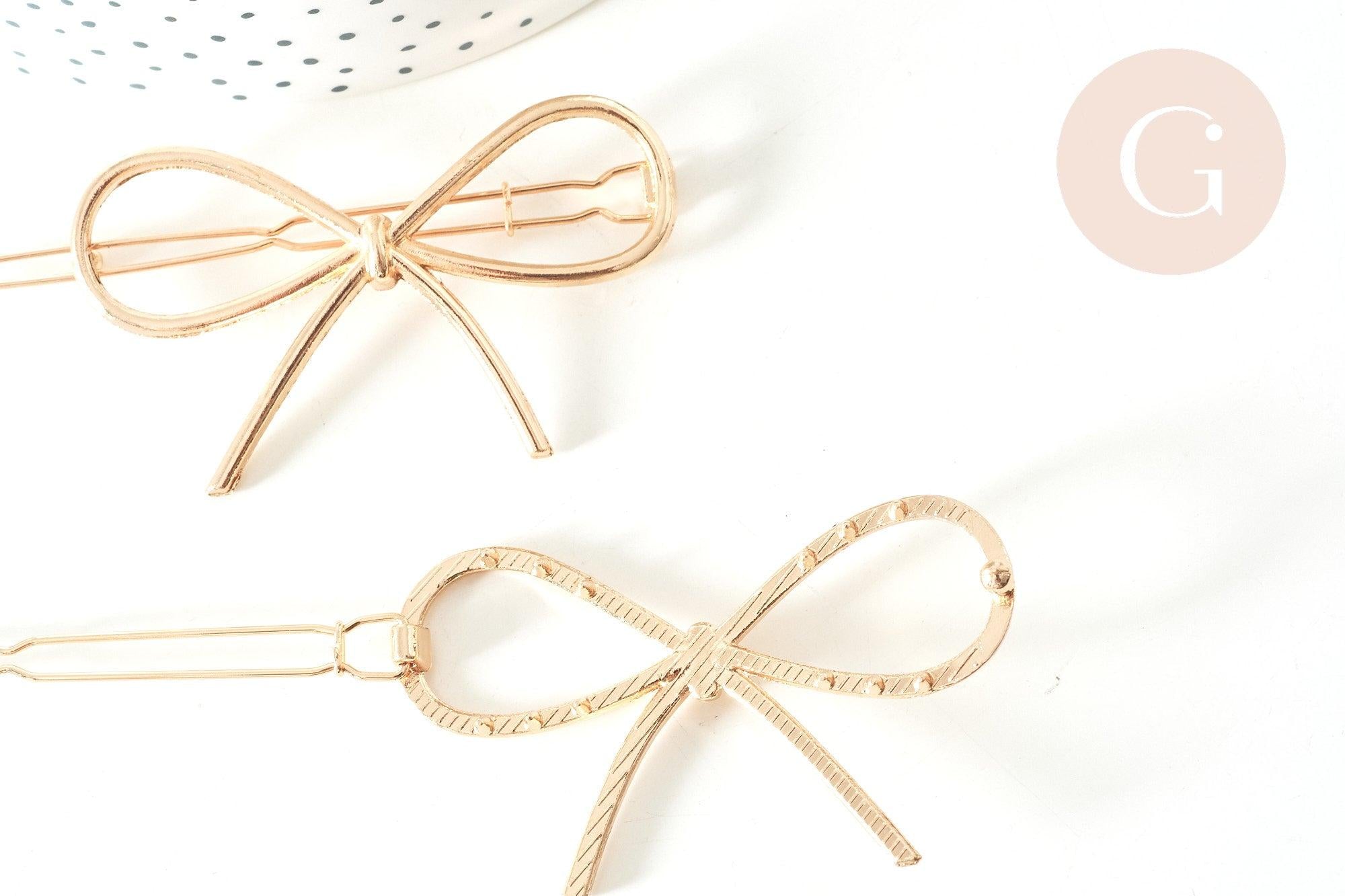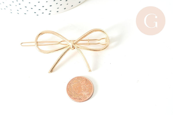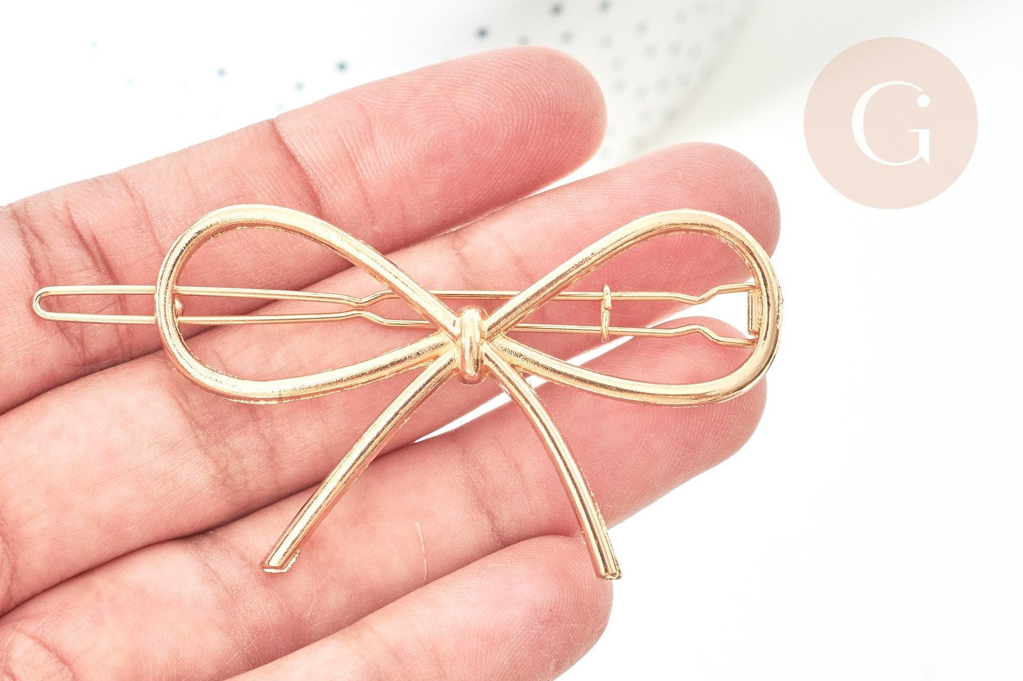 A gold metal bow barrette clip holder to adopt immediately to make personalized hair clips. Ideal for weddings!