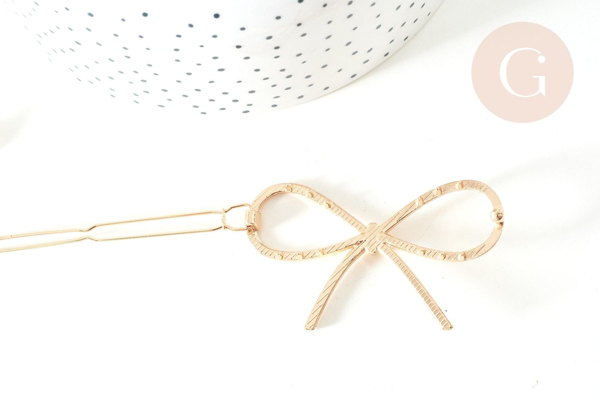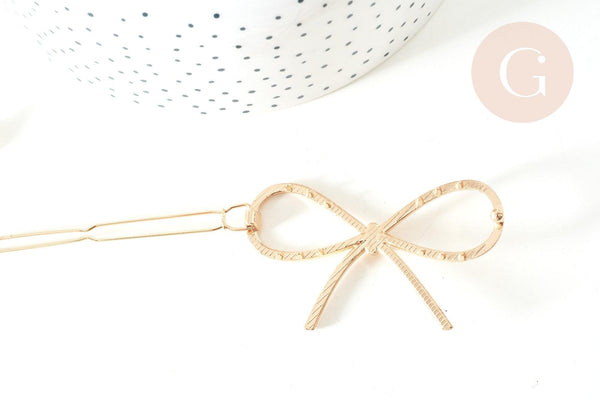 Support de barrette clip noeud en fer doré sans plateau 59mm, x1 (G7740)