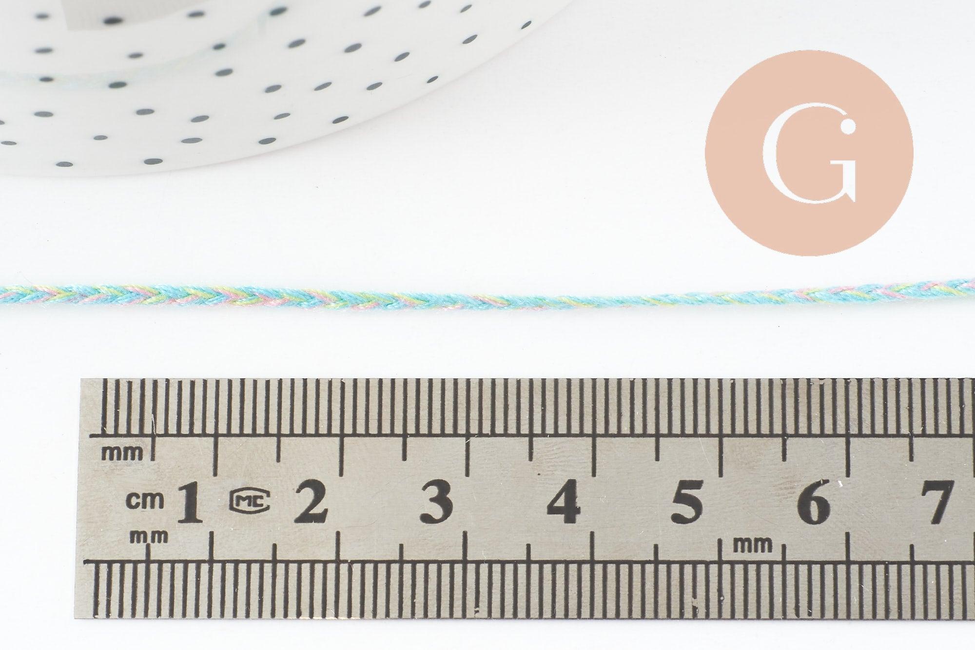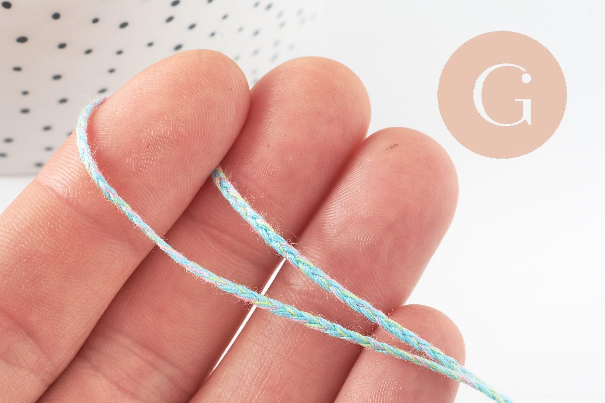 Use this turquoise braided cord enhanced with yellow and pink for your jewelry creations.