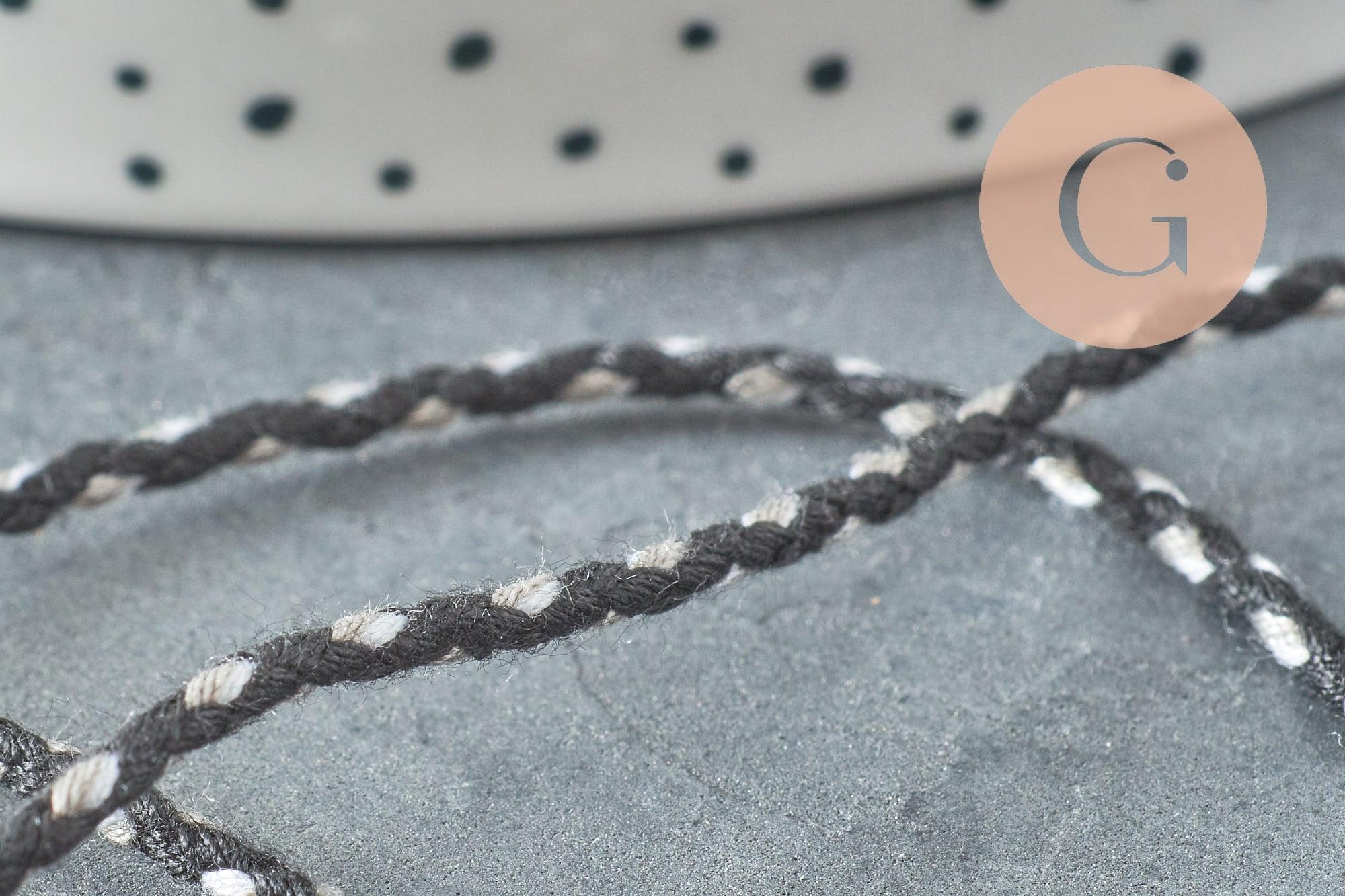 This black, white and grey cord is made of three braided colored cotton threads. It is an ideal cord for making your jewelry, accessories, bags and clothes or for scrapbooking and other creative hobbies.
