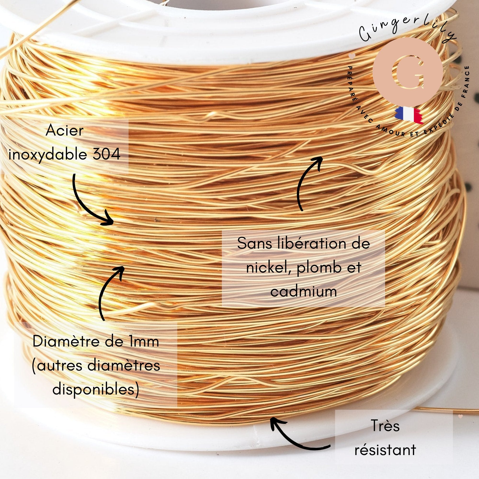 Fil d'acier 304 inoxydable doré IP inoxydable 1mm, x1 mètre (G7701)