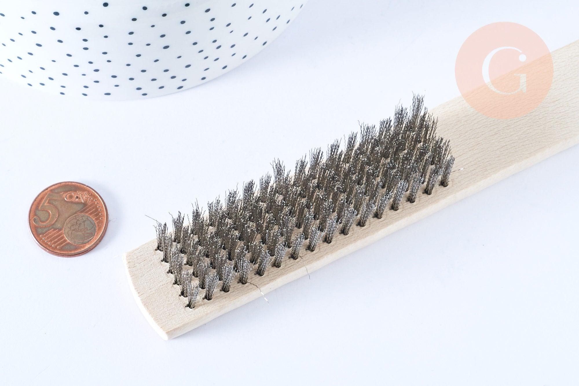 Brosse métallique nettoyage bijoux en bois et acier inoxydable 20 mm, x1 (G7065)