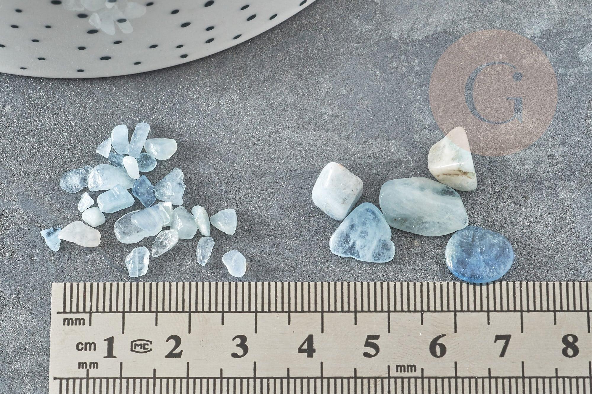 Raw natural rolled aquamarine sand, blue aquamarine, natural stone, lithotherapy, aquamarine chips, 20 gram bag, 5-22mm