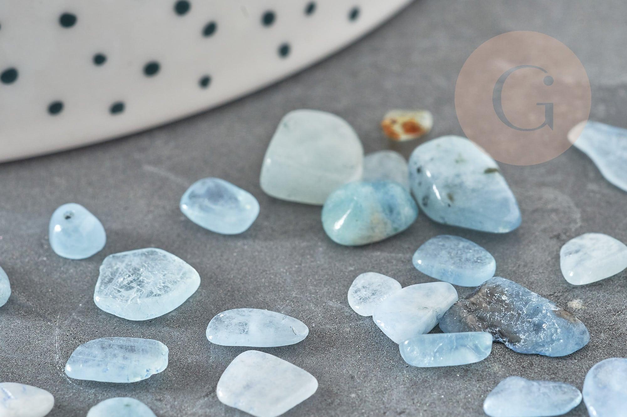 Sable pierre aigue-marine naturelle brute roulée 5-22mm non percé, x20gr (G0398)