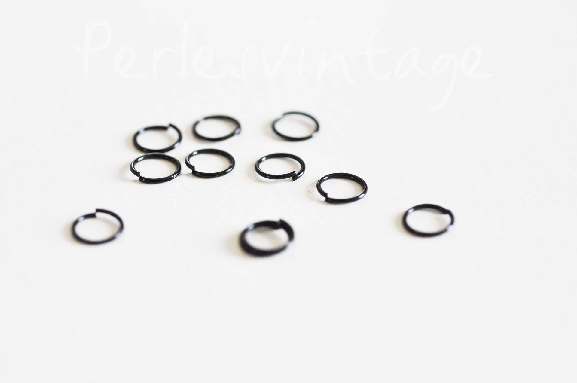 black round rings, creative supplies, metalgun jewelry, open rings, black supplies, jewelry creation, set of 20, 8mm A set of 20 intense black open rings. diameter: 8mm 1.6GR Wire thickness: 21 gauge (1.2mm) A basic to always have to make...