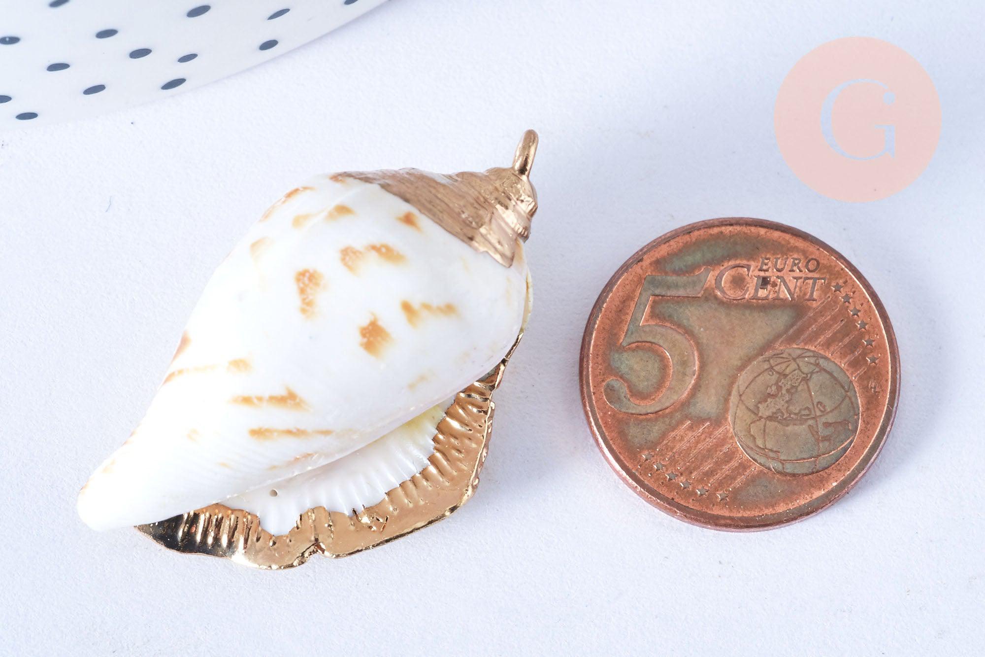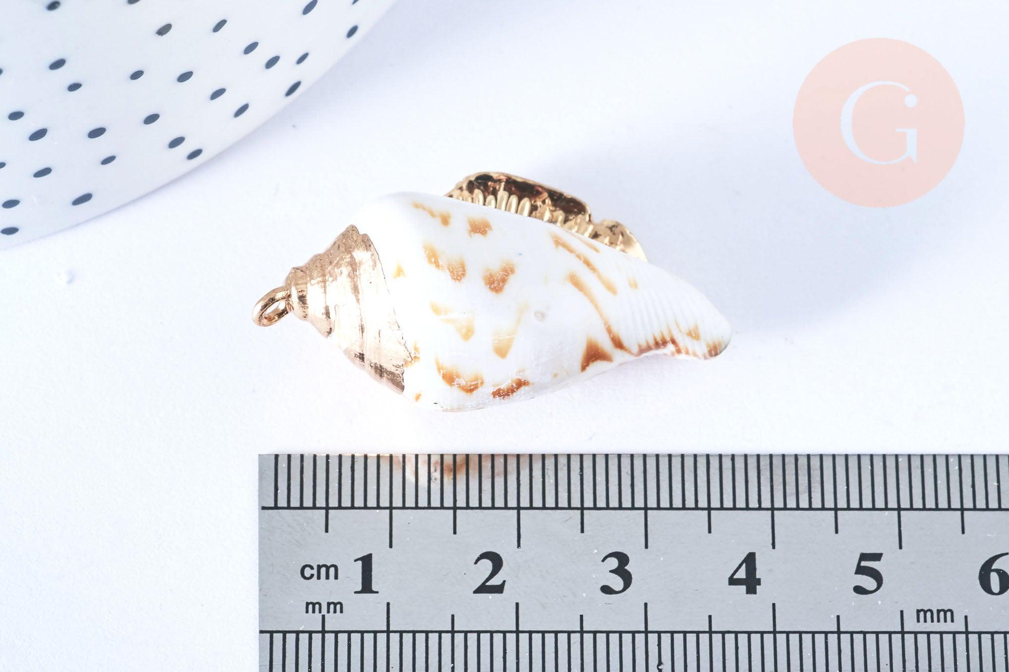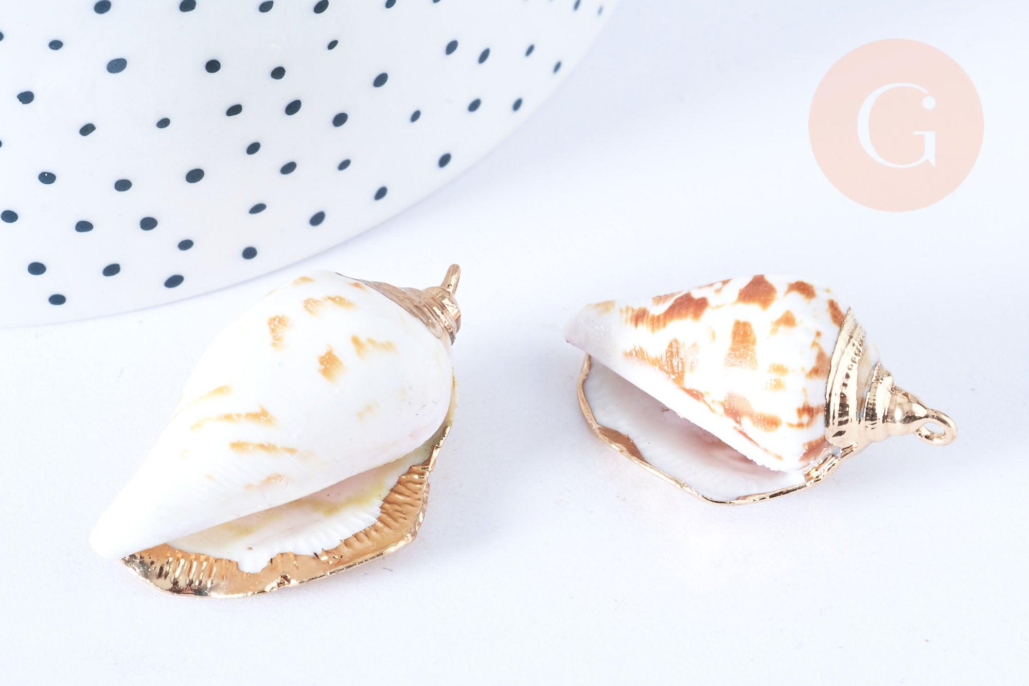 EP Pendentif coquillage naturel spirale doré 33-47mm, pendentif création bijoux coquillage, x1 G7161
