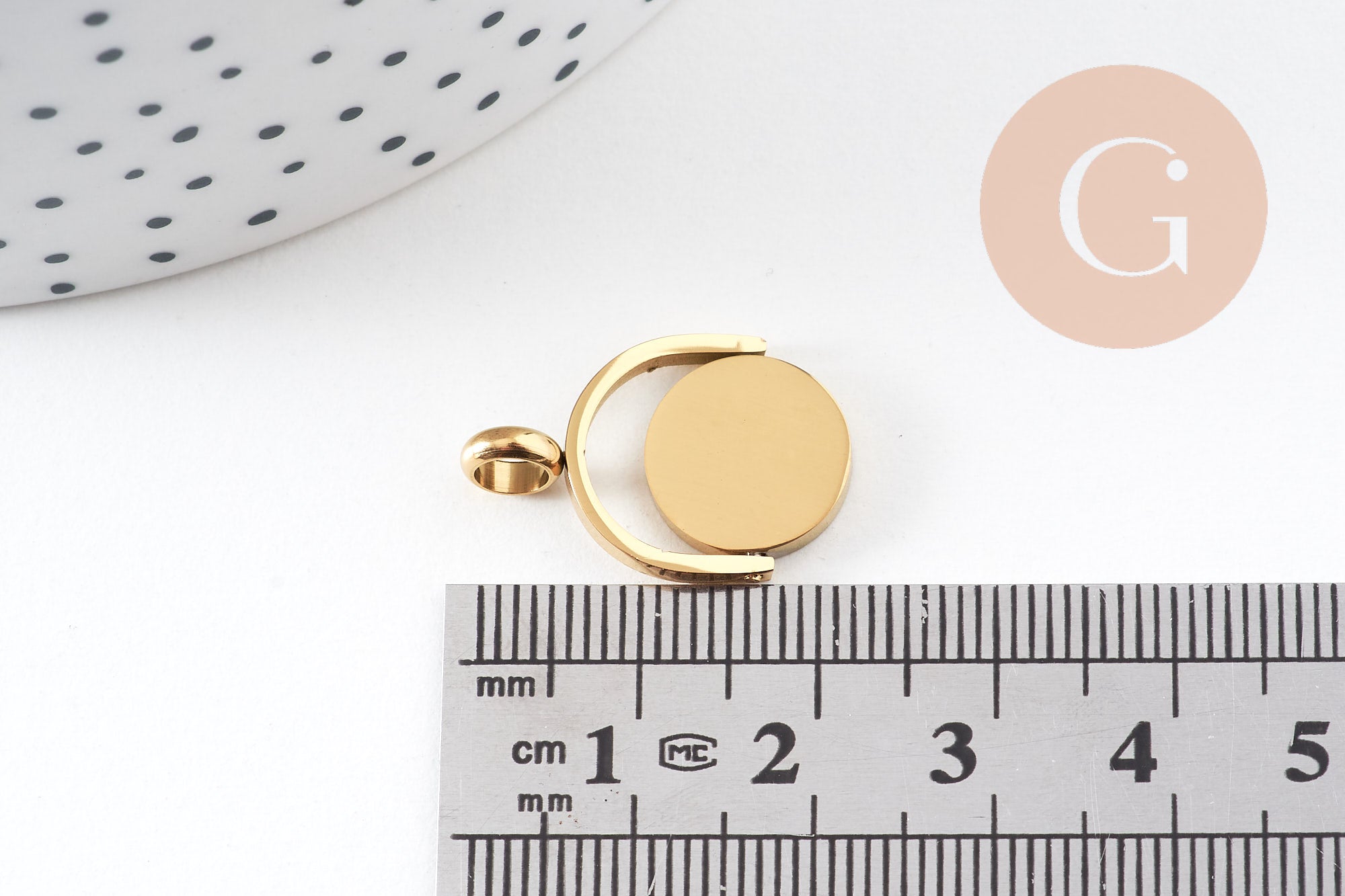 Enhance your creations with this customizable rotating medallion pendant in 304 gold-plated stainless steel . Its central disc actually rotates, offering a modern and playful effect to your handmade jewelry.