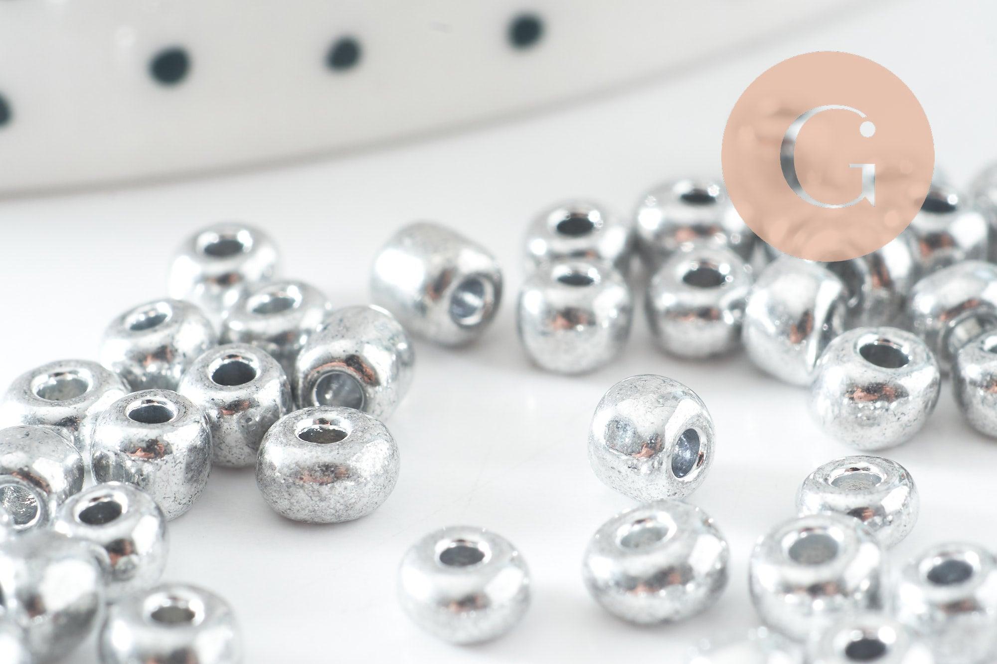 Grosses perles rocaille argent 4mm, x10 Gr (G5401)