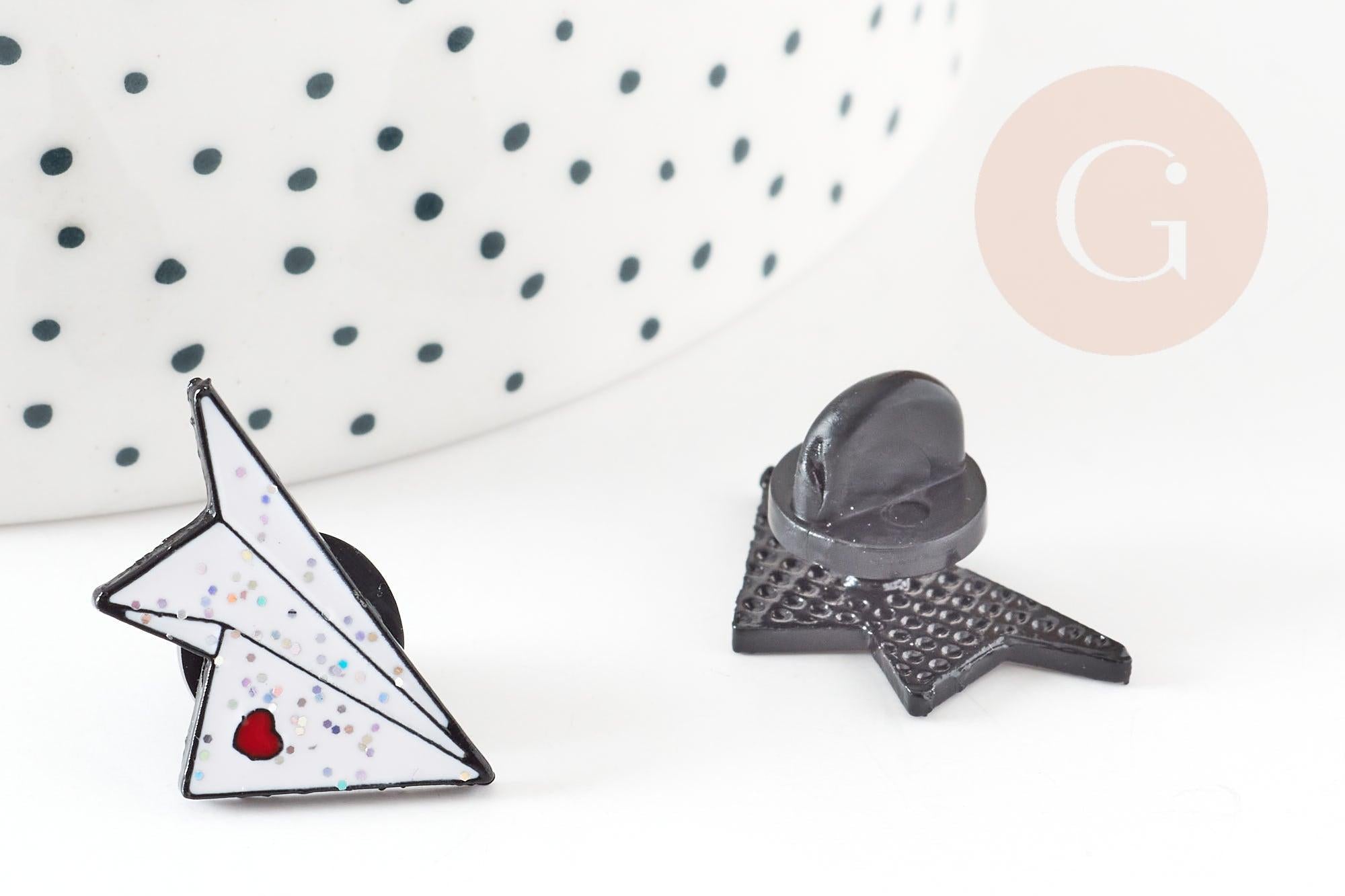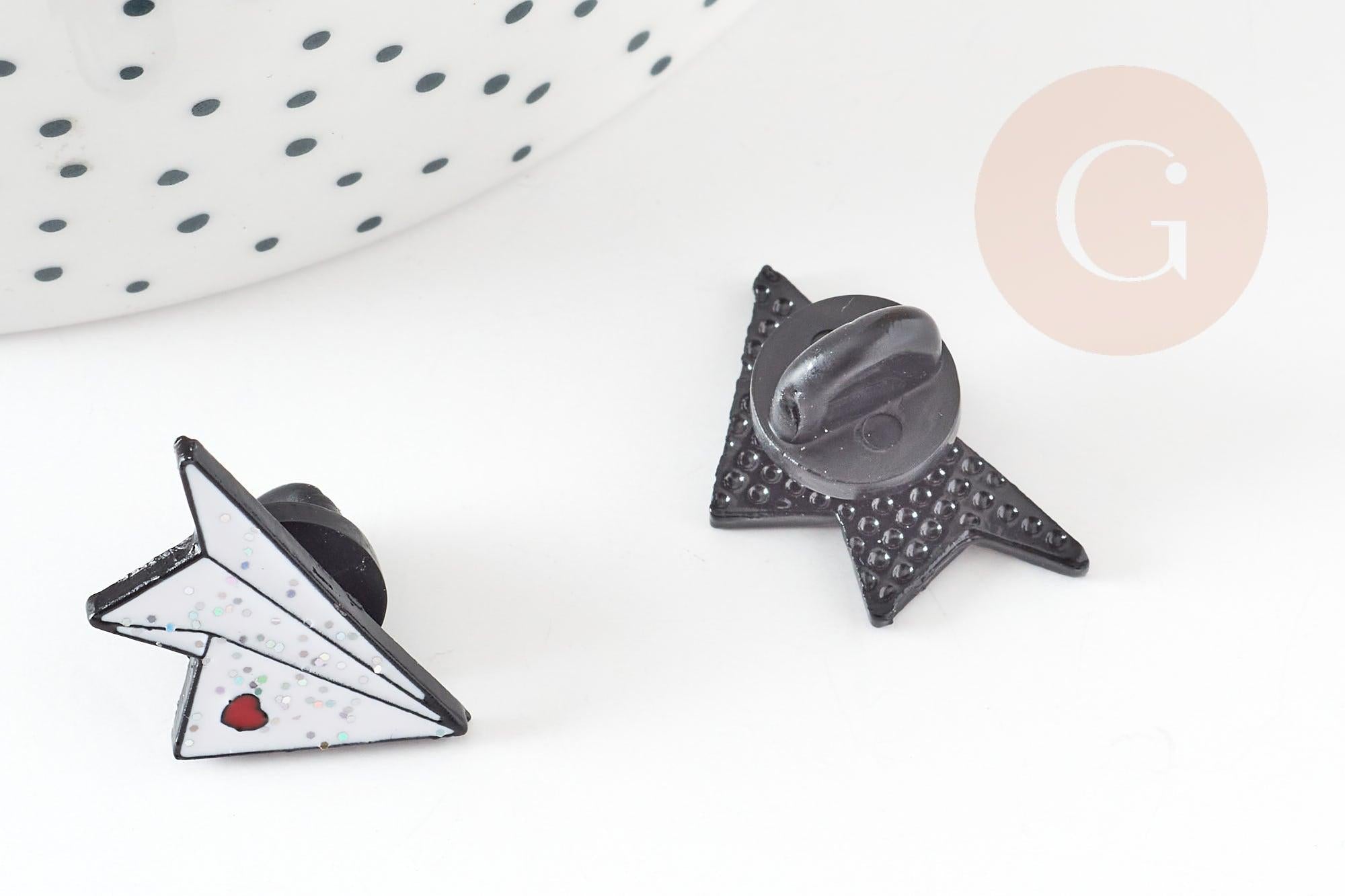 Broche pins avion en papier coeur émaillé blanc rouge 22.5mm,broche customisation vêtement x1 G9299