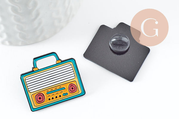 For a birthday to an 80's fan, offer this enameled radiocassette pin . This pin is perfect for adding a touch of originality to your clothes and accessories and showing off your personality.
