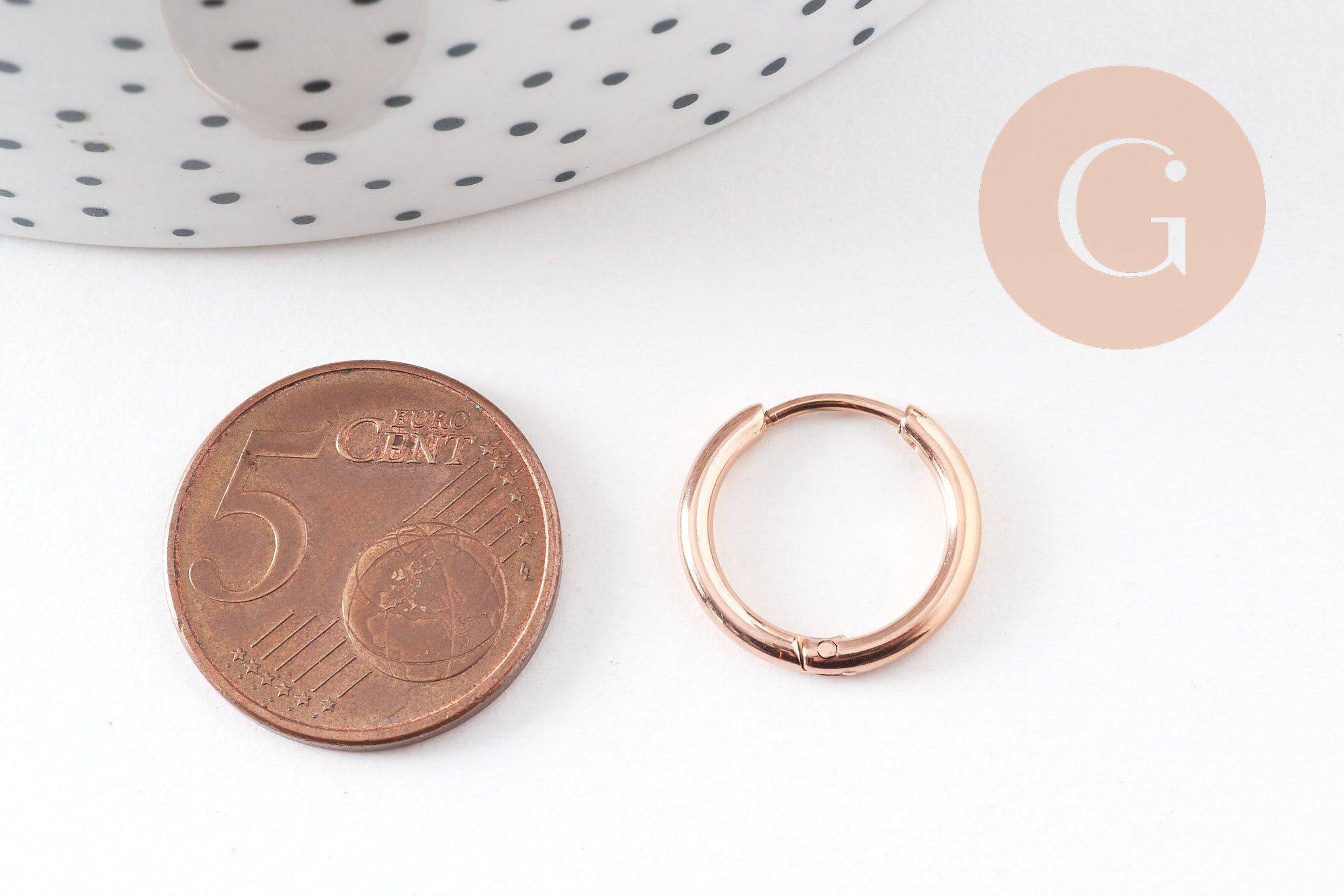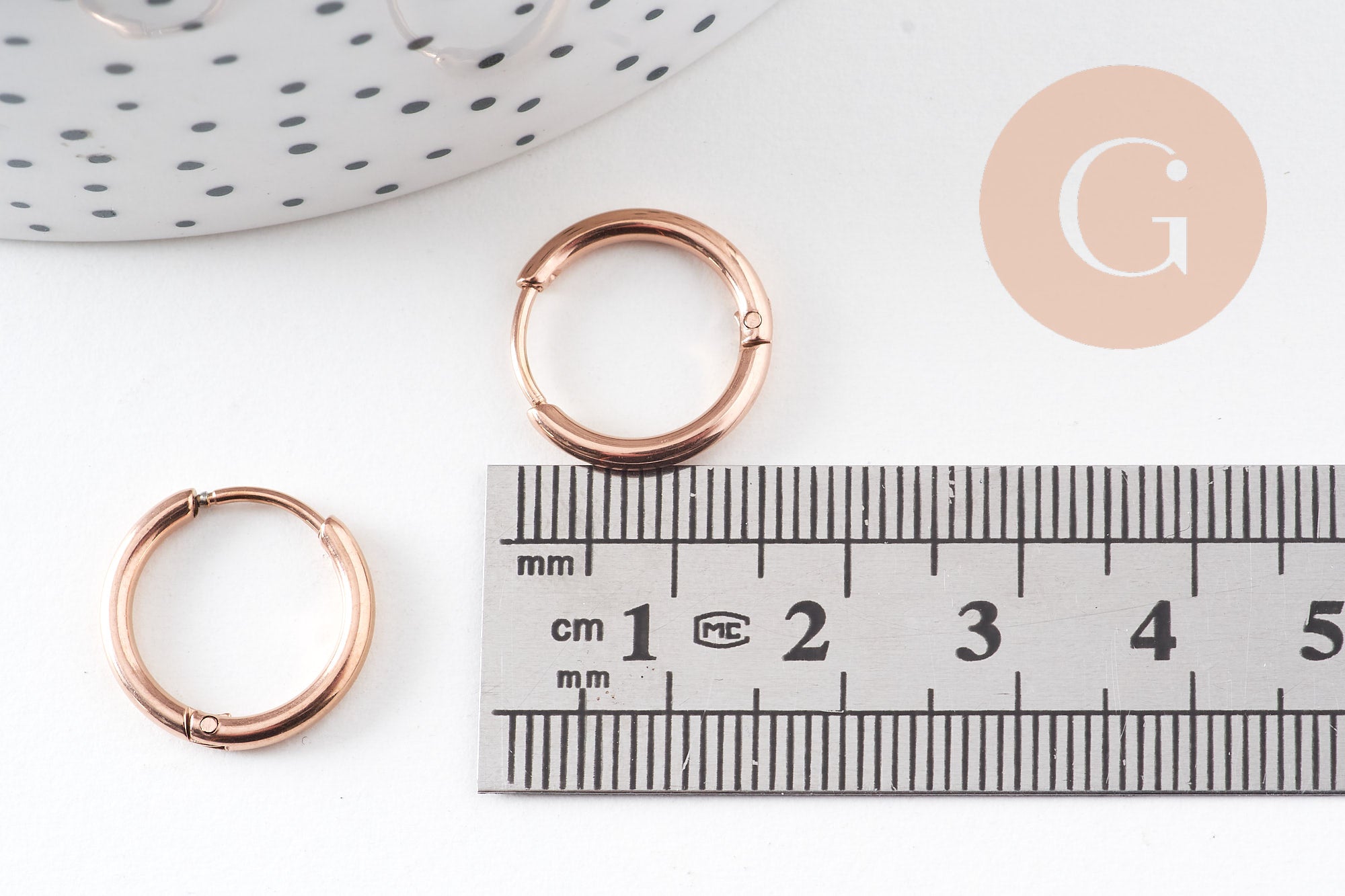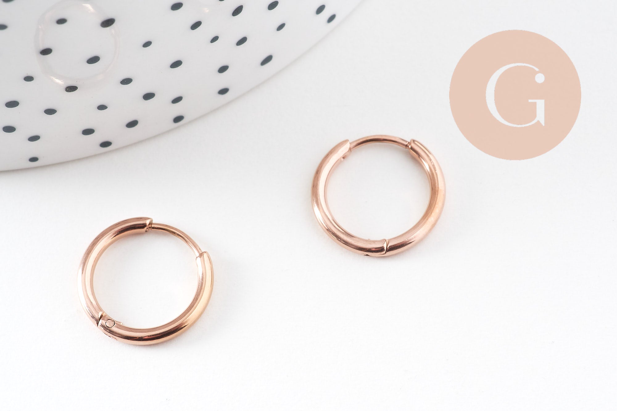 These 304 stainless steel hoop earrings with an ionized rose gold finish are elegant, modern and comfortable earrings for everyday wear.