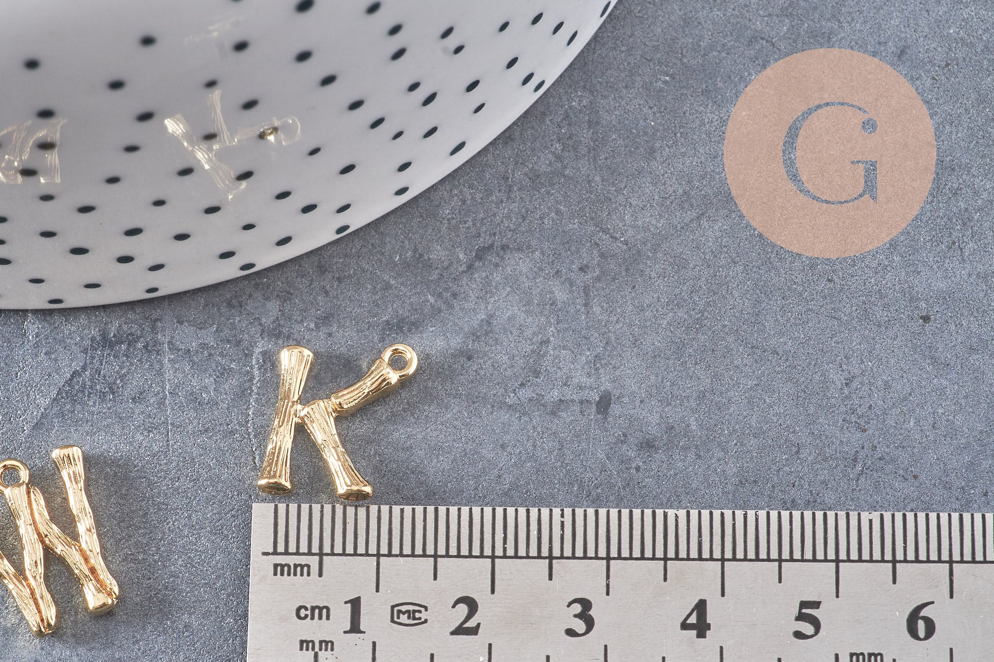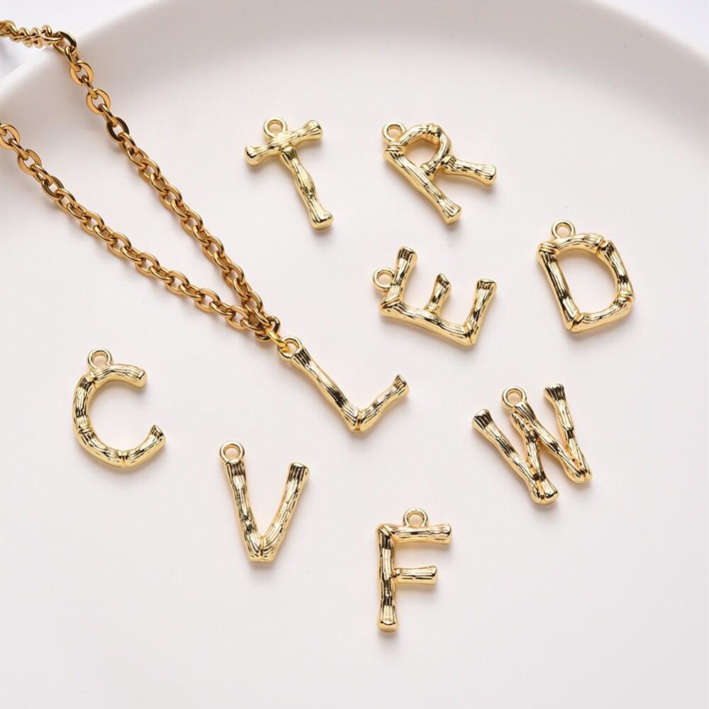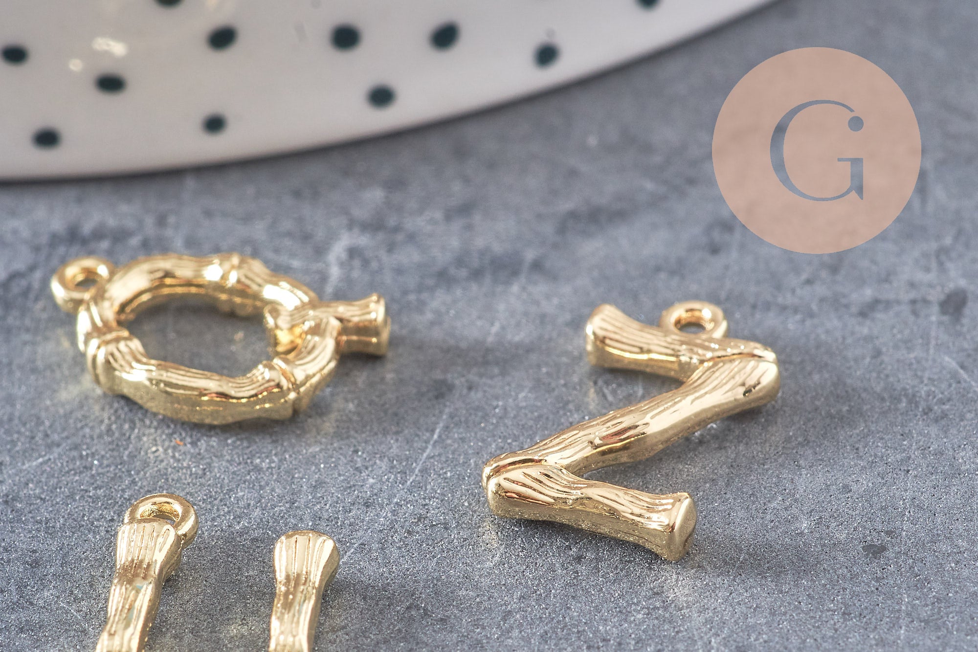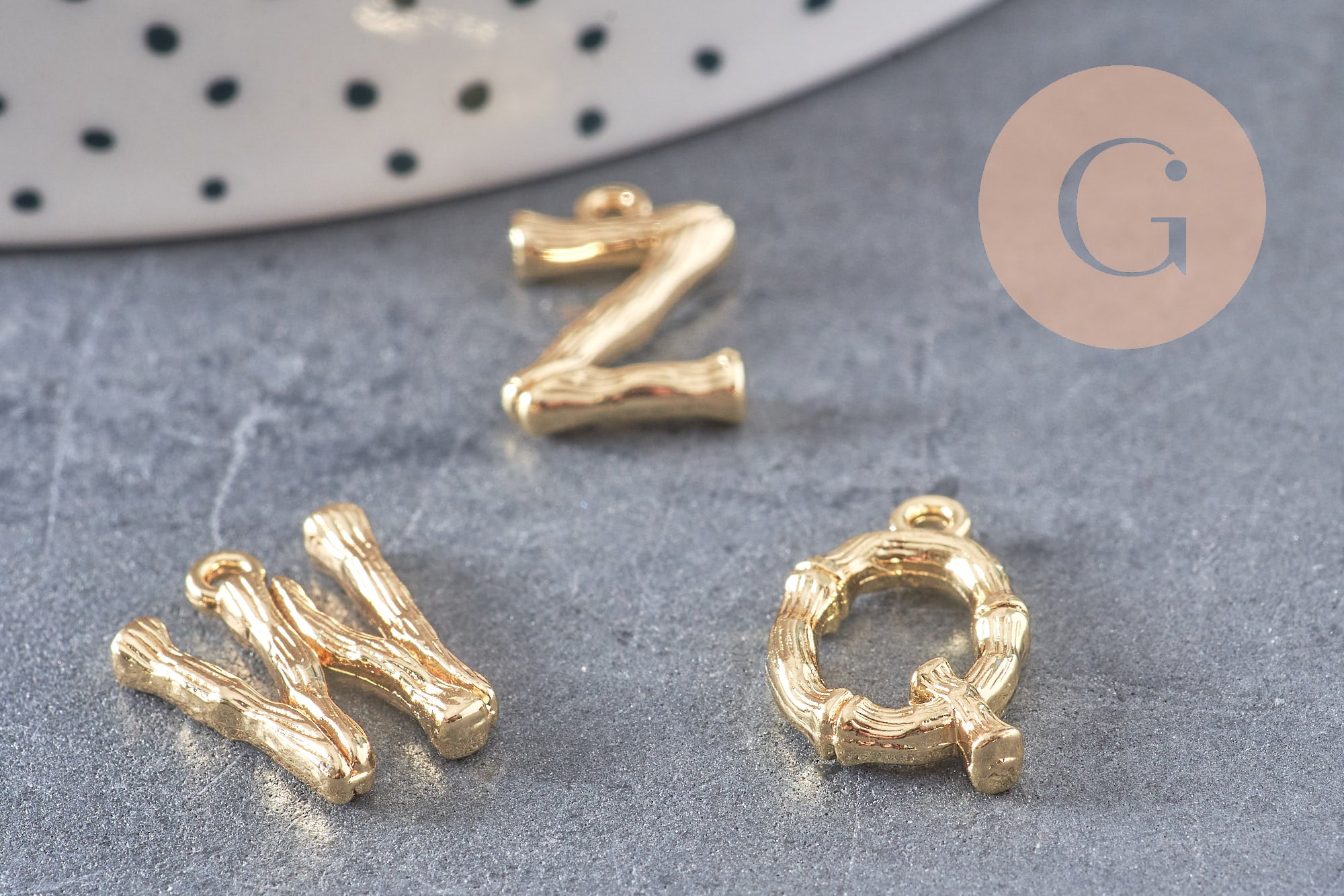 Express your style with this bamboo initial pendant in 18K gold-plated zamac , a piece that is both elegant and symbolic . Its textured bamboo design brings a natural and modern touch to your jewelry, perfect for creating a personalized necklace or a lucky charm.