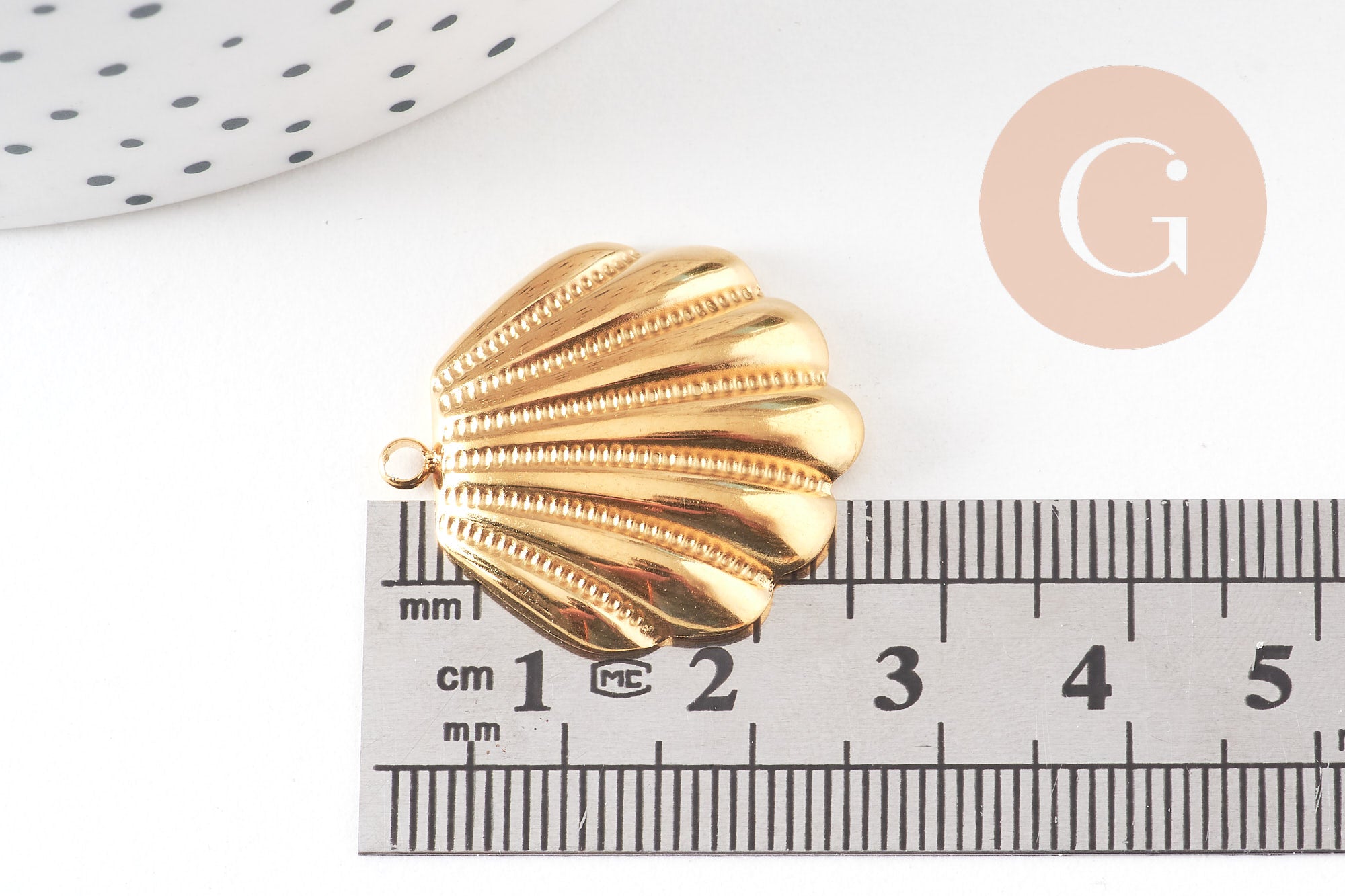 Pendentif coquillage acier IP inoxydable doré 18K 26.5mm, x1 (G10806)