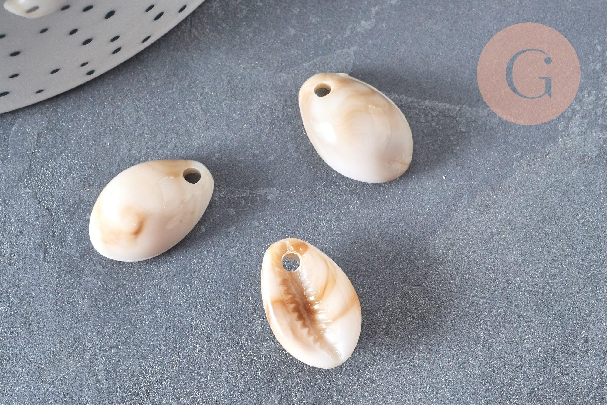 Pendentif coquillage acrylique beige marbré 19mm, perle acrylique,cauri,coquillage bijou,19mm, x10 (G5488)