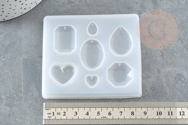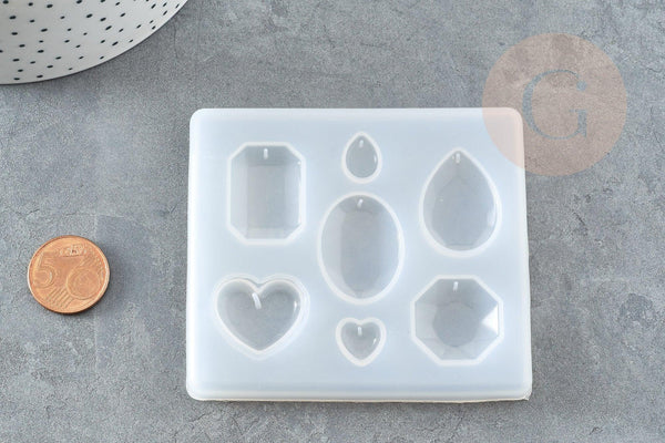 A very practical mold for making an infinite number of “precious stone” or heart type pendants in resin, with or without inclusions.