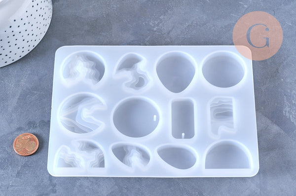 Moule pour fabrication boucles créoles résine 171x126mm, moule en silicone pour réaliser des bijoux avec inclusion en résine, x1 G6297