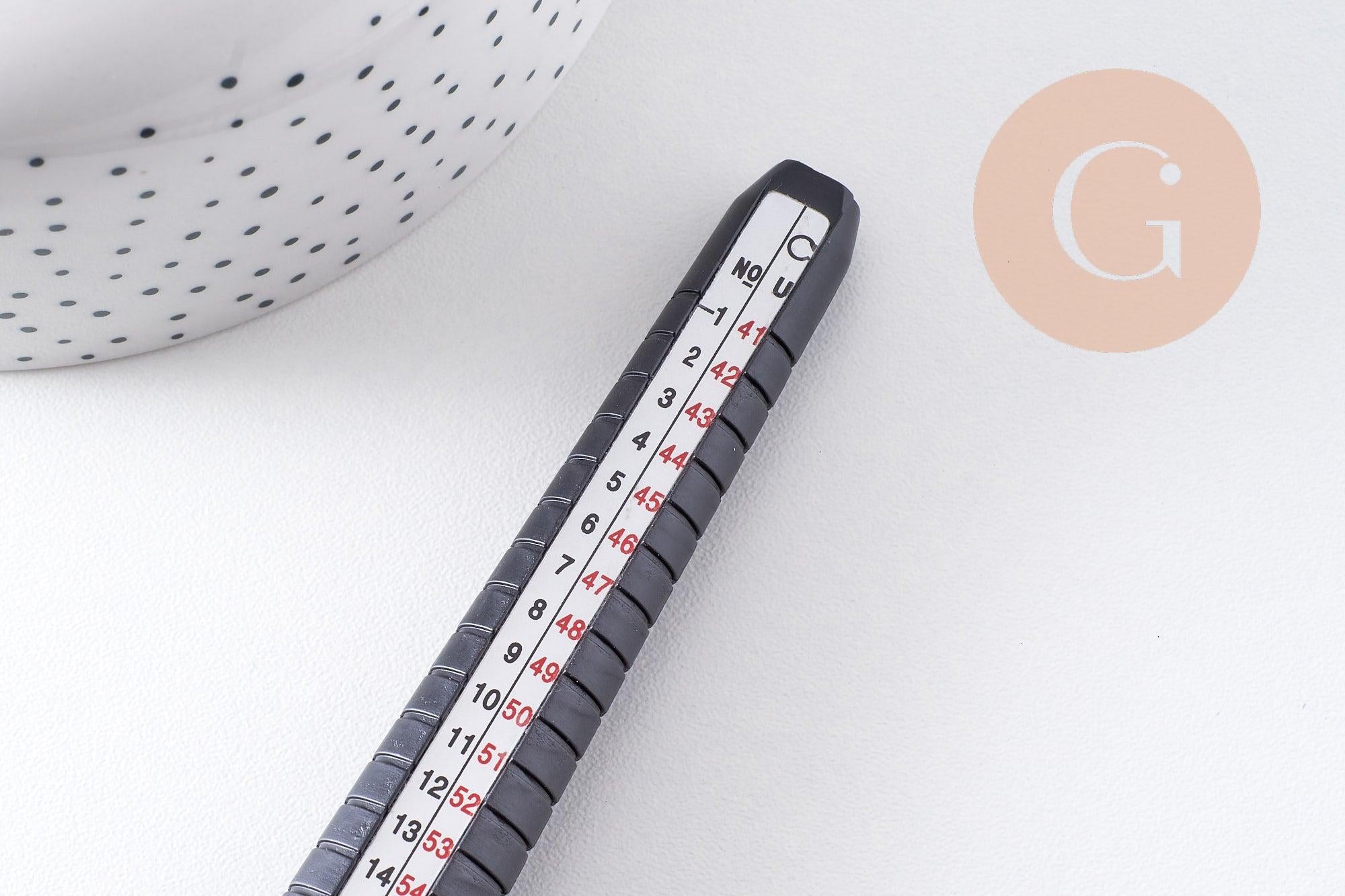 Thanks to its double ( UK and US sizes) or quadruple ( US, European, Japanese and HK sizes) marking, it is perfect for measuring or checking the inside diameter of your rings.