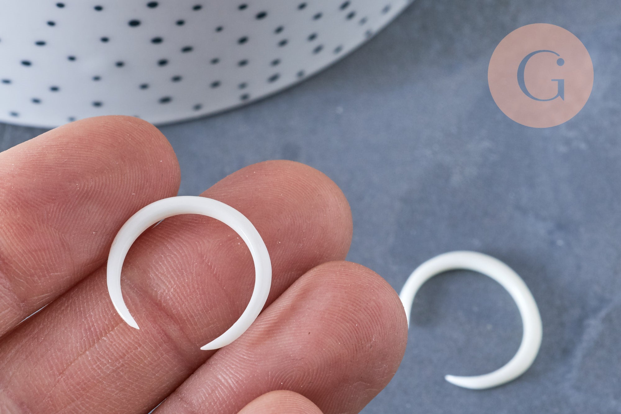 Let yourself be enchanted by the charm of this white horn crescent pendant ! Its neutral color and sleek design will inspire you to create your DIY costume jewelry .
