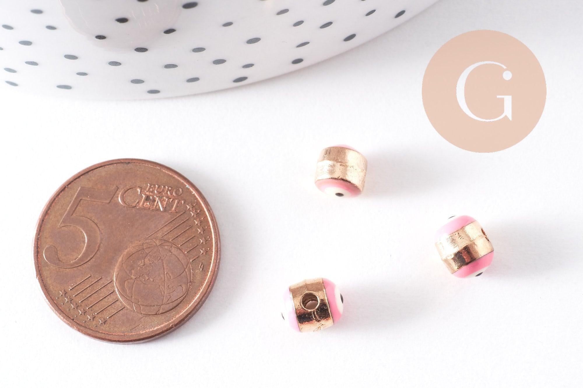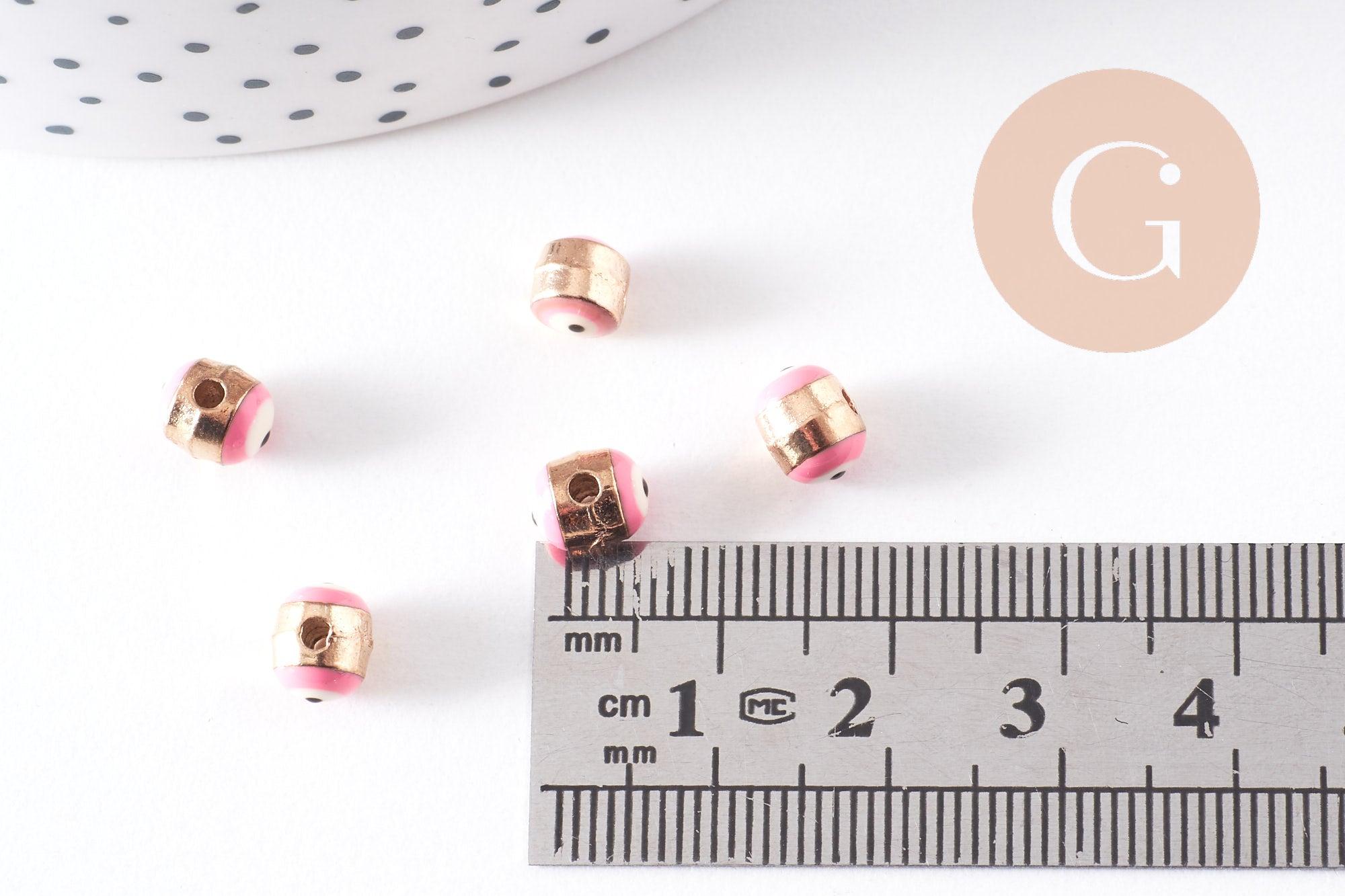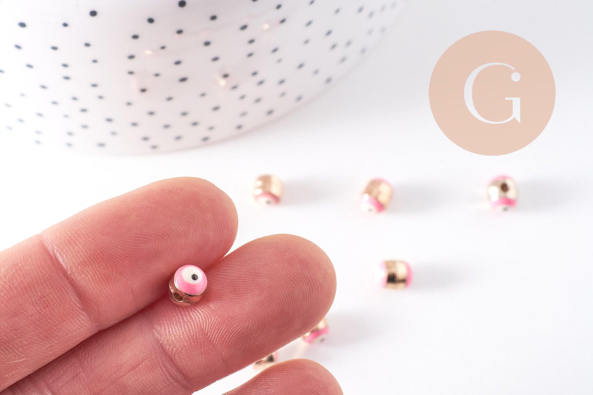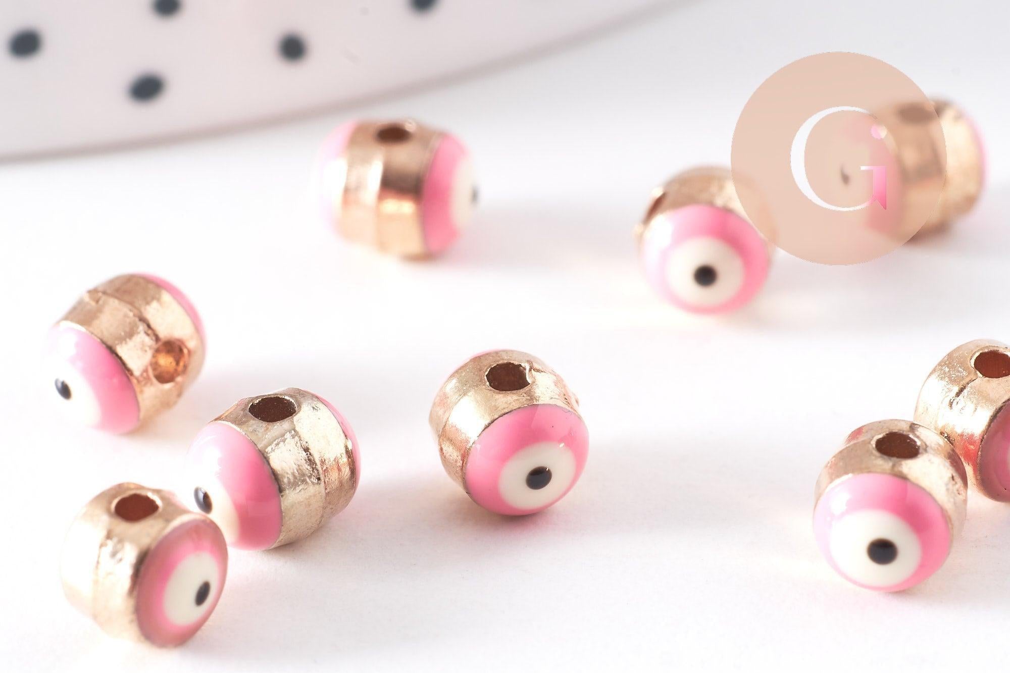 Add a touch of protection and elegance to your creations with these beautiful golden Evil Eye beads with pink enamel . Made from golden zamac with a shiny coating, these 6mm beads are perfect for creating refined and trendy jewelry.