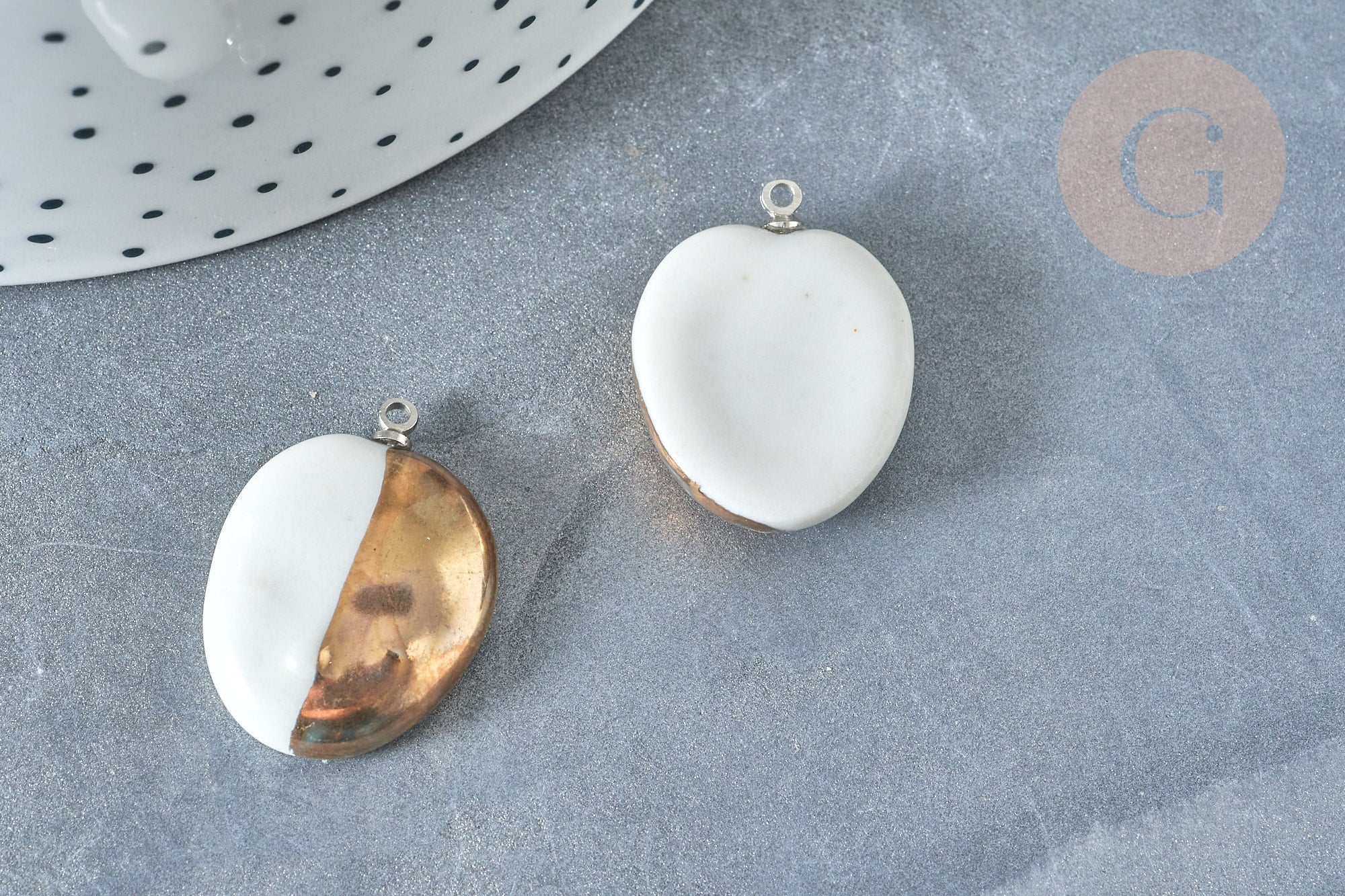 This oval pendant is enameled in white and gold, for the creation of original and poetic jewelry.