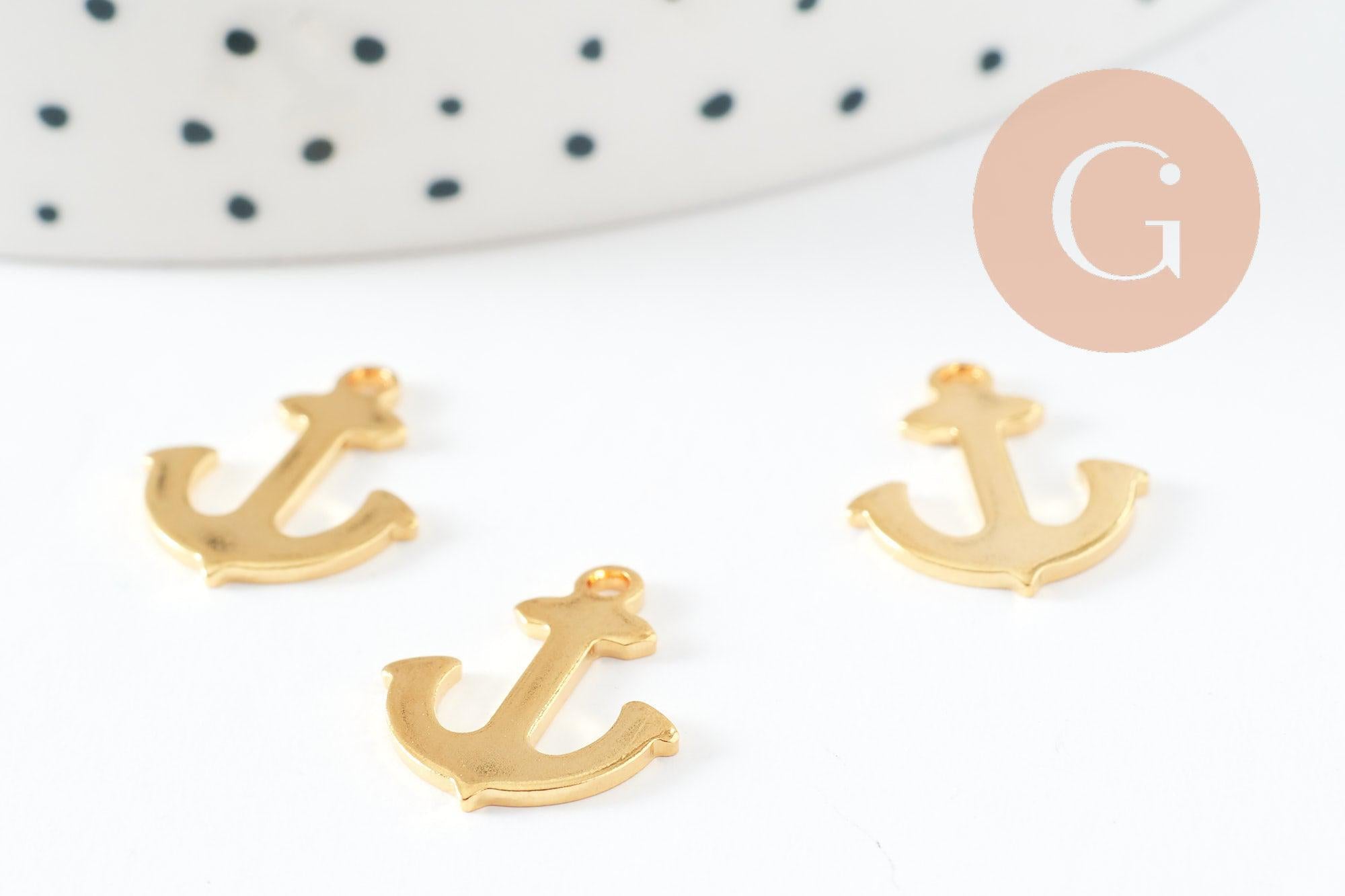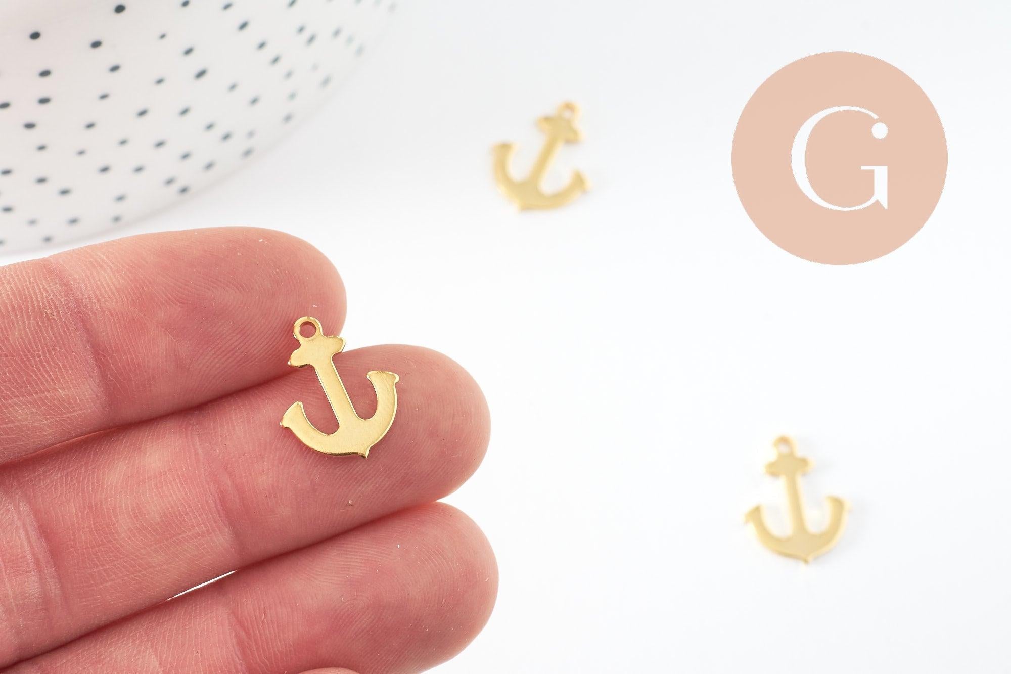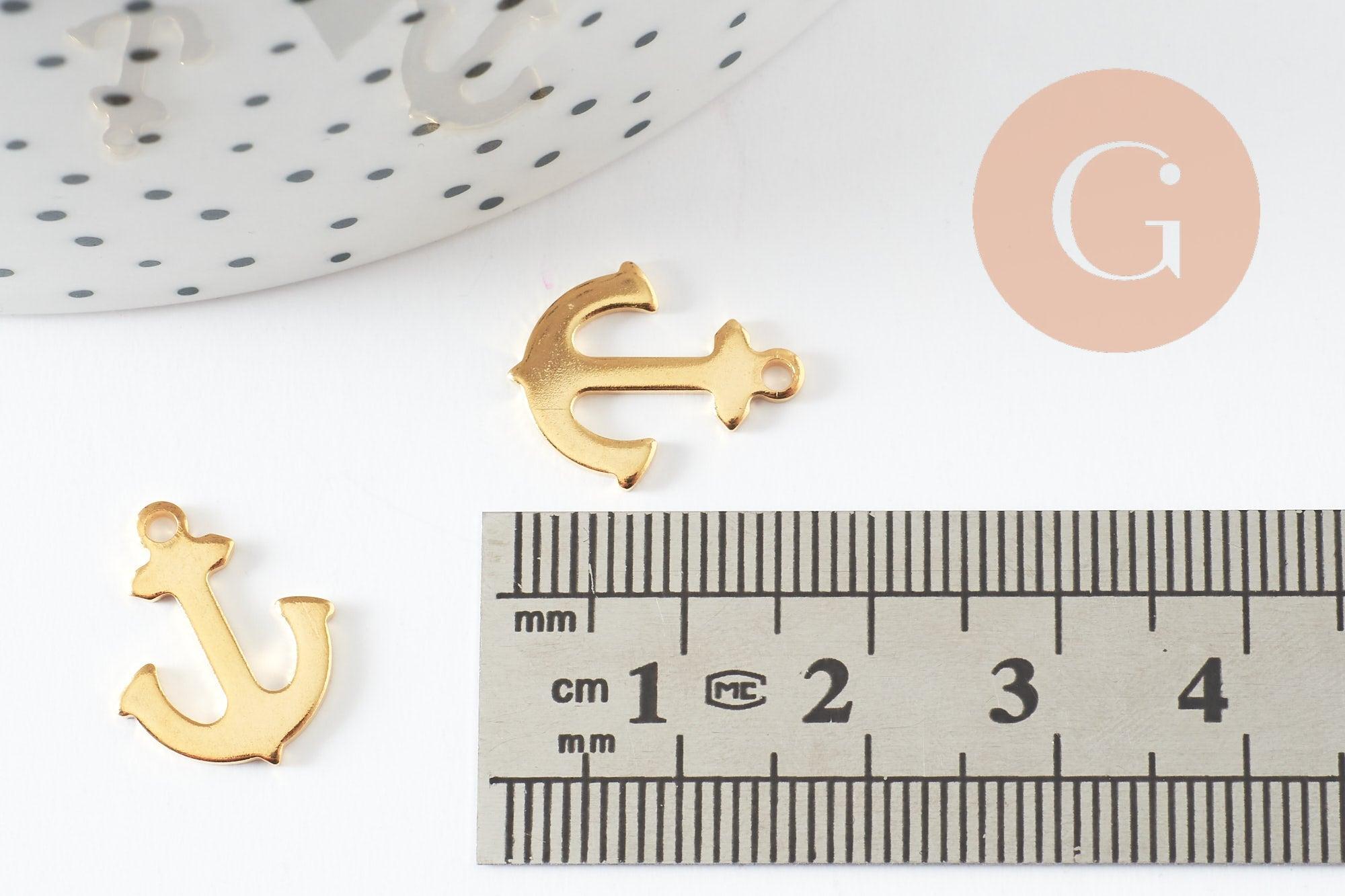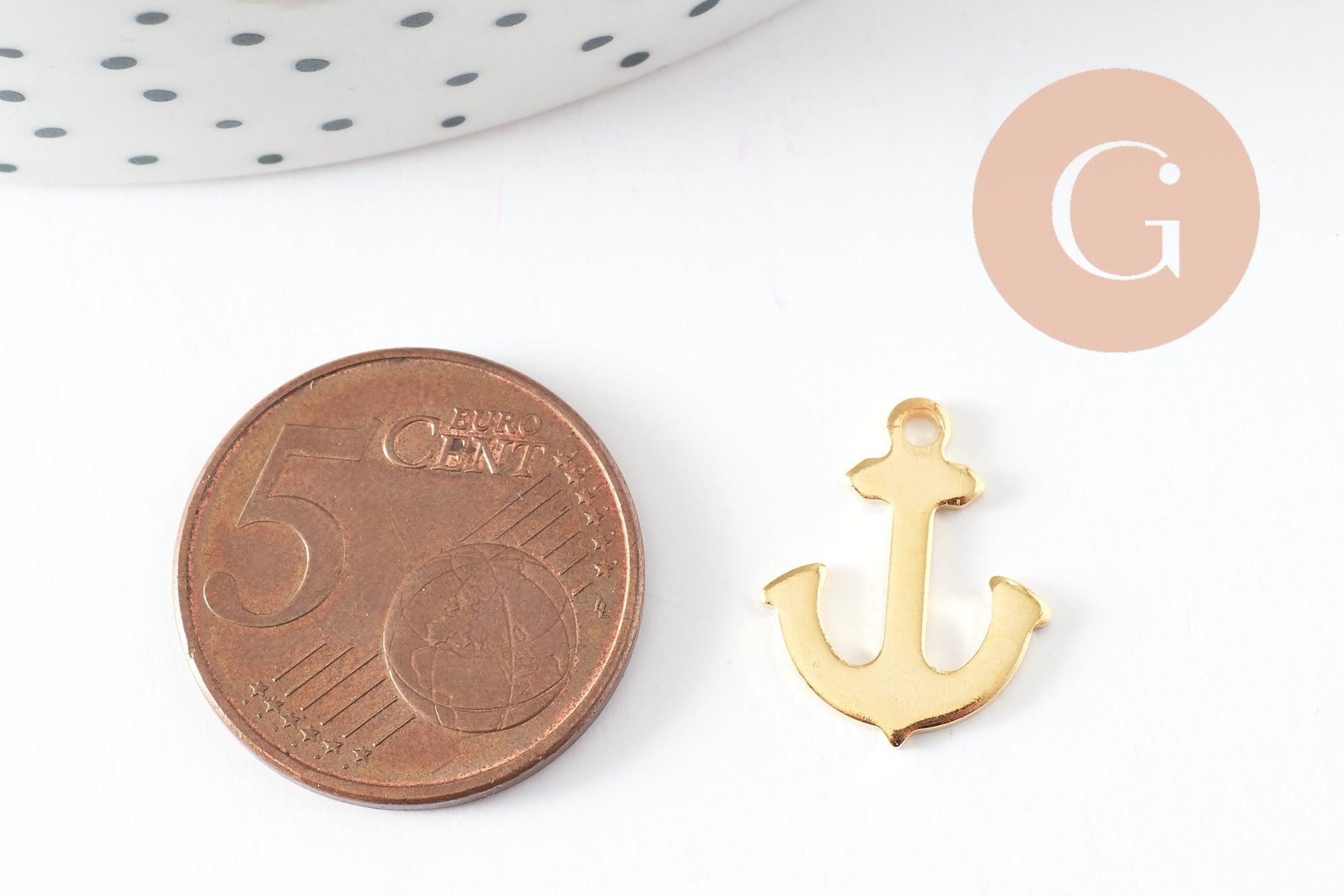 Breloque ancre acier doré inoxydable 16mm, x1 (G9665)