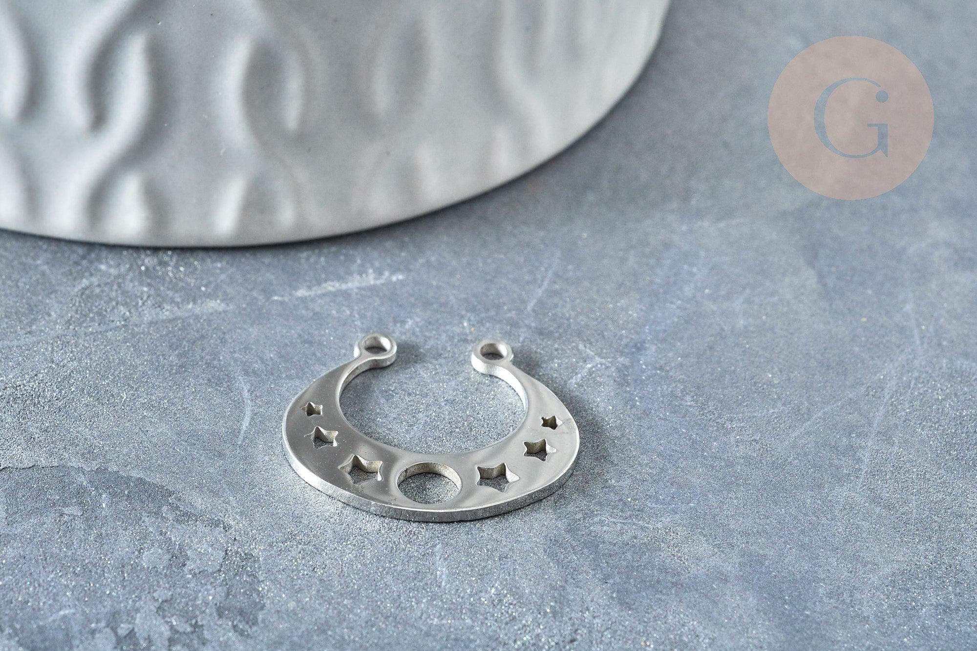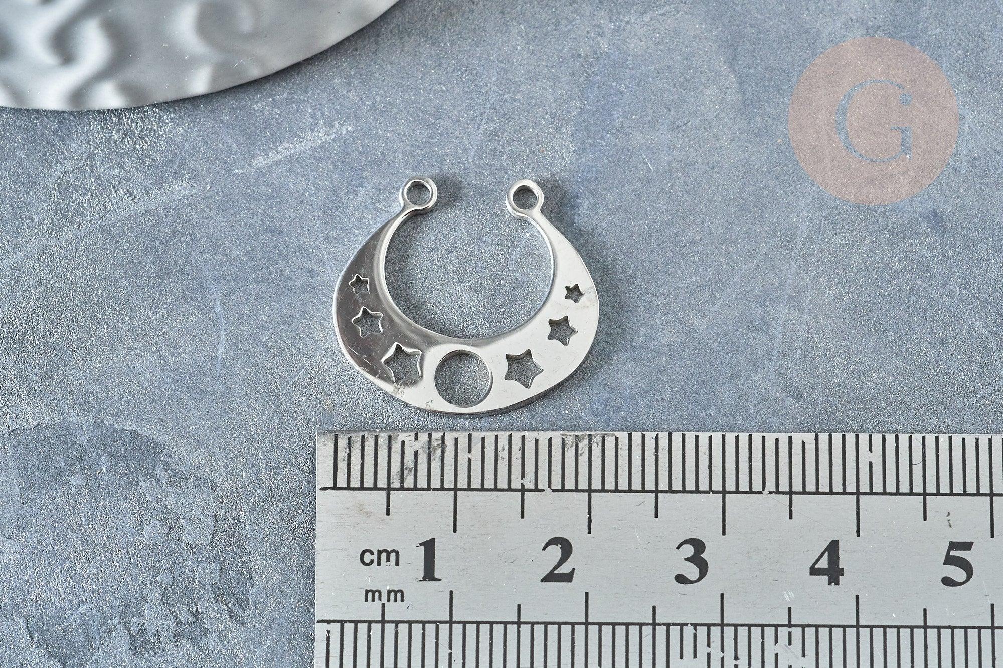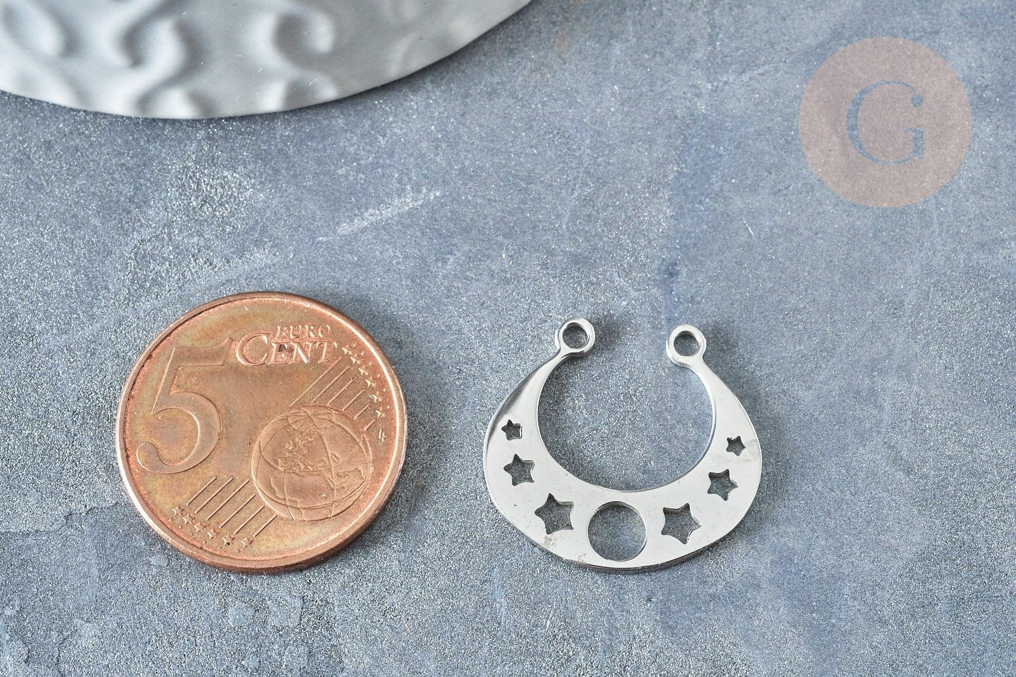 Pendentif argenté torque lune et étoiles acier inoxydable 19mm, breloque acier inoxydable platine x1 G7605