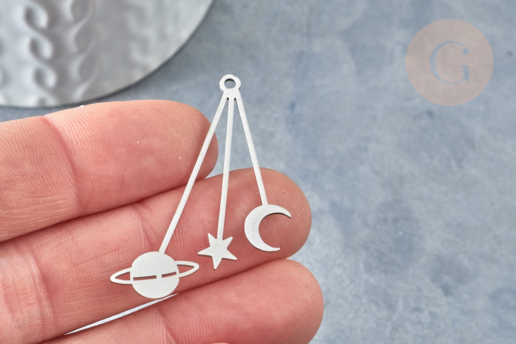 For your jewelry in the astral and constellation trend , here is a cute pendant in the shape of a rain of stars and planets in platinum stainless steel , which you can embellish with a stone or pearls.