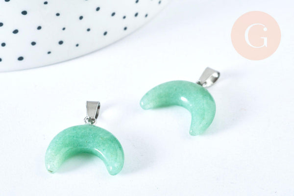 Pendentif aventurine verte lune acier inoxydable 18-19mm, pendentif pierre acier inoxydable, bijou pendentif pierre naturelle, x1 (G6997)