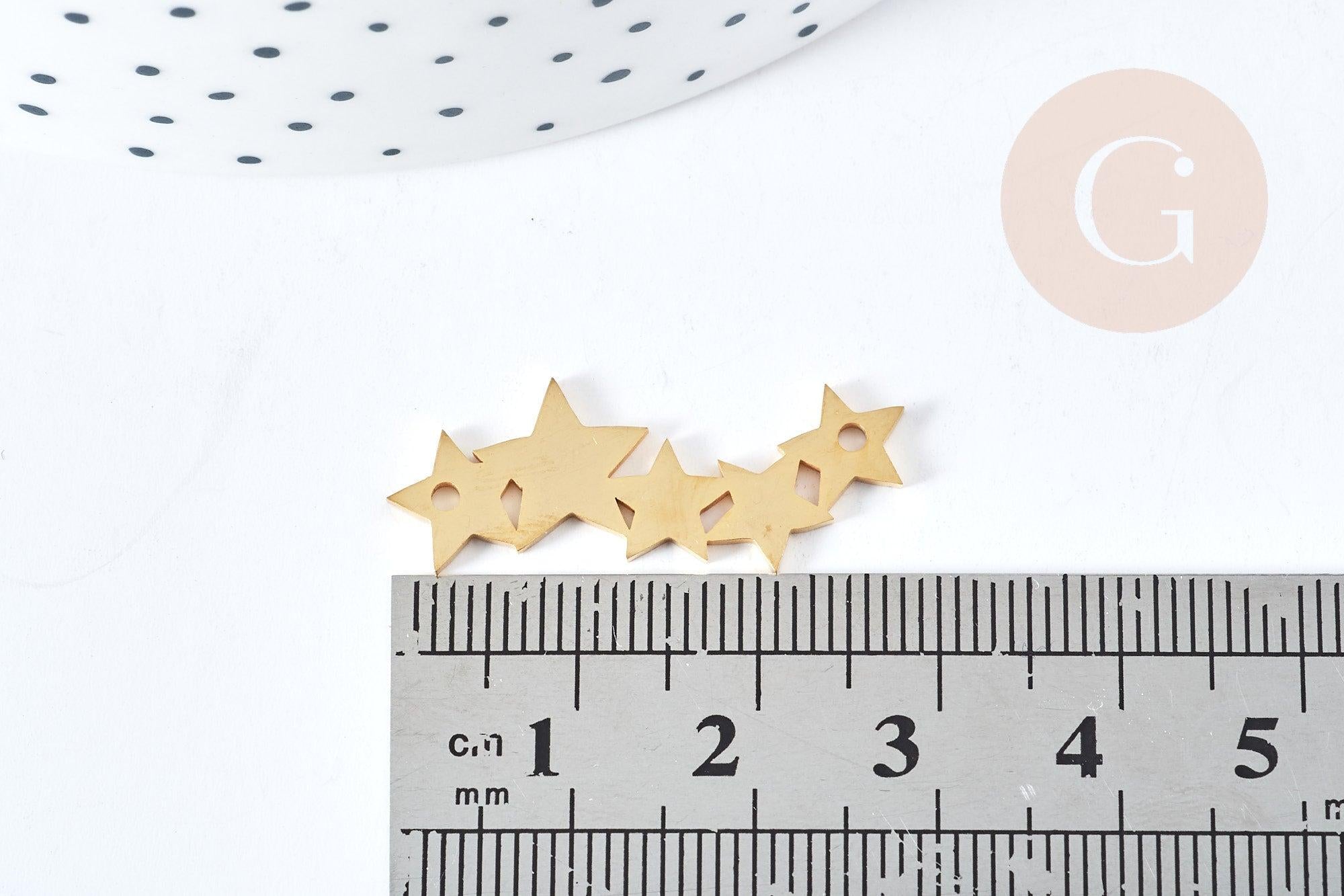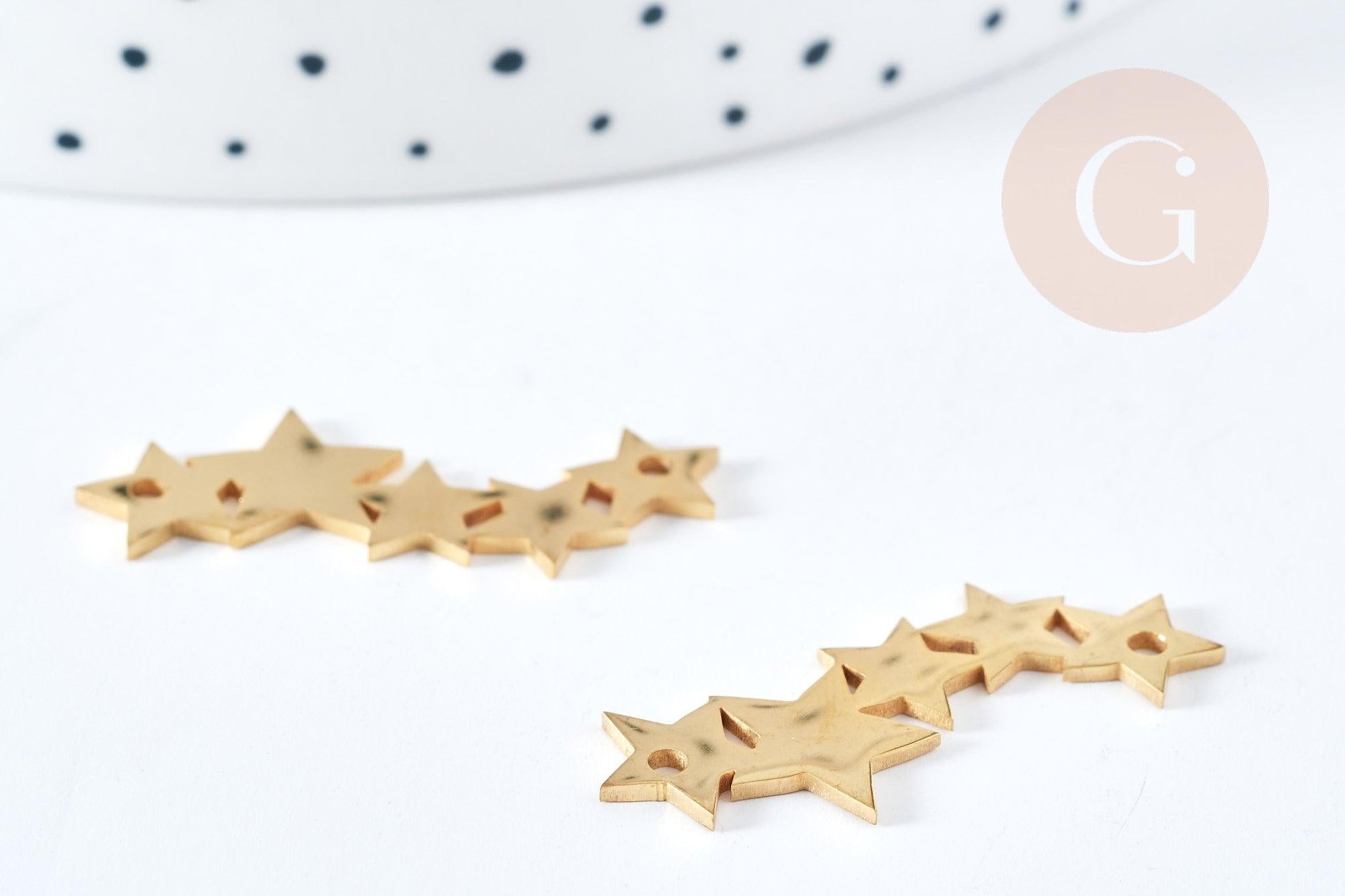 Pendentif connecteur étoiles acier 304 doré inoxydable 30mm, x1 (G9789)