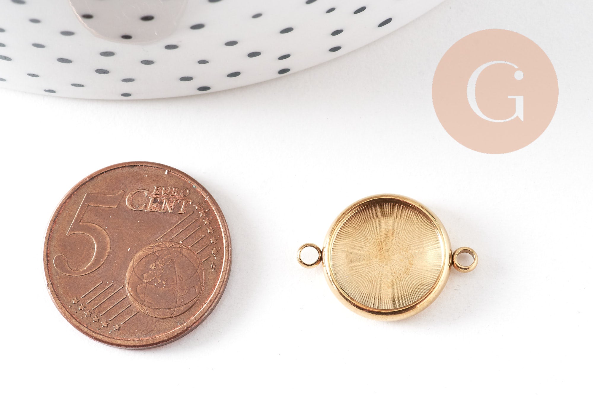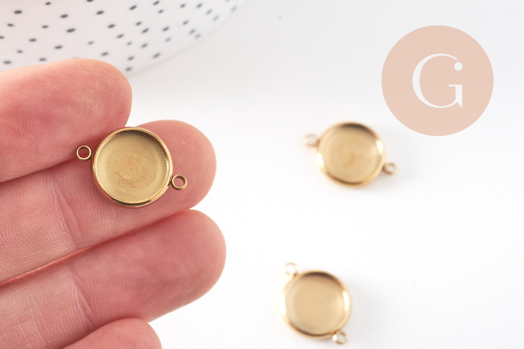 Bring elegance and durability to your creations with this round connector in IP gold 304 stainless steel , specially designed to accommodate a 12 mm cabochon . Its smooth and refined base highlights both natural stones and resin, glass or polymer clay cabochons.