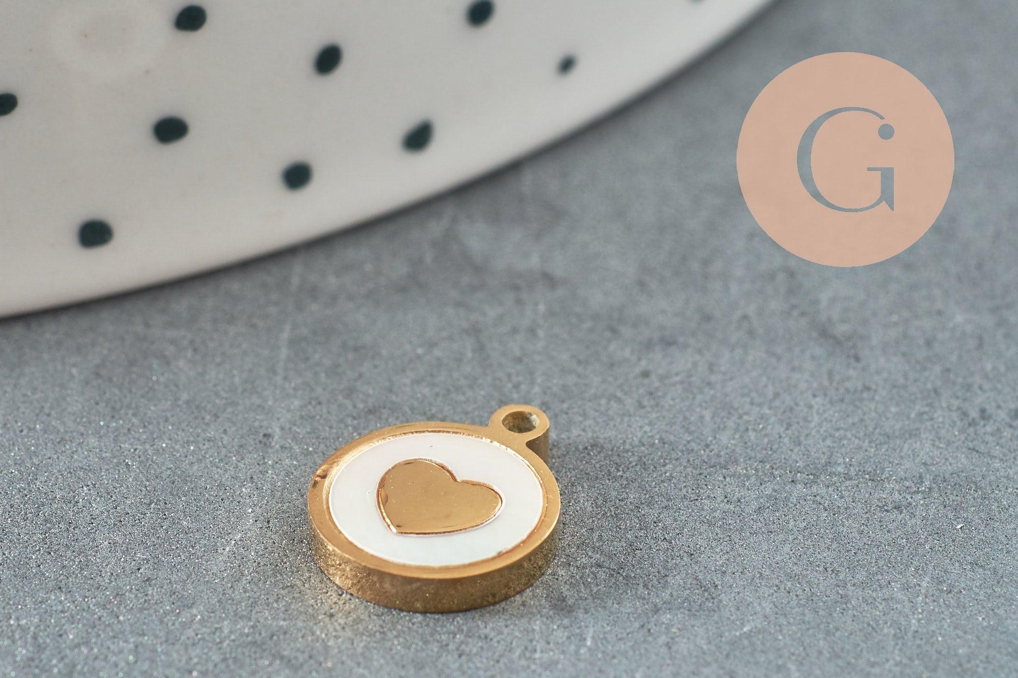 Pendentif médaille coeur acier 304 IP inoxydable doré 18K 18mm, x1 (G9579)