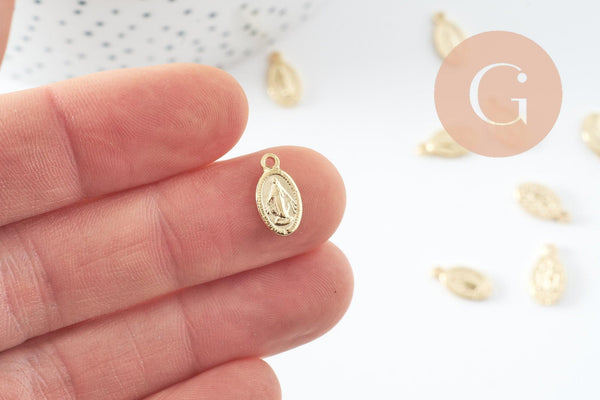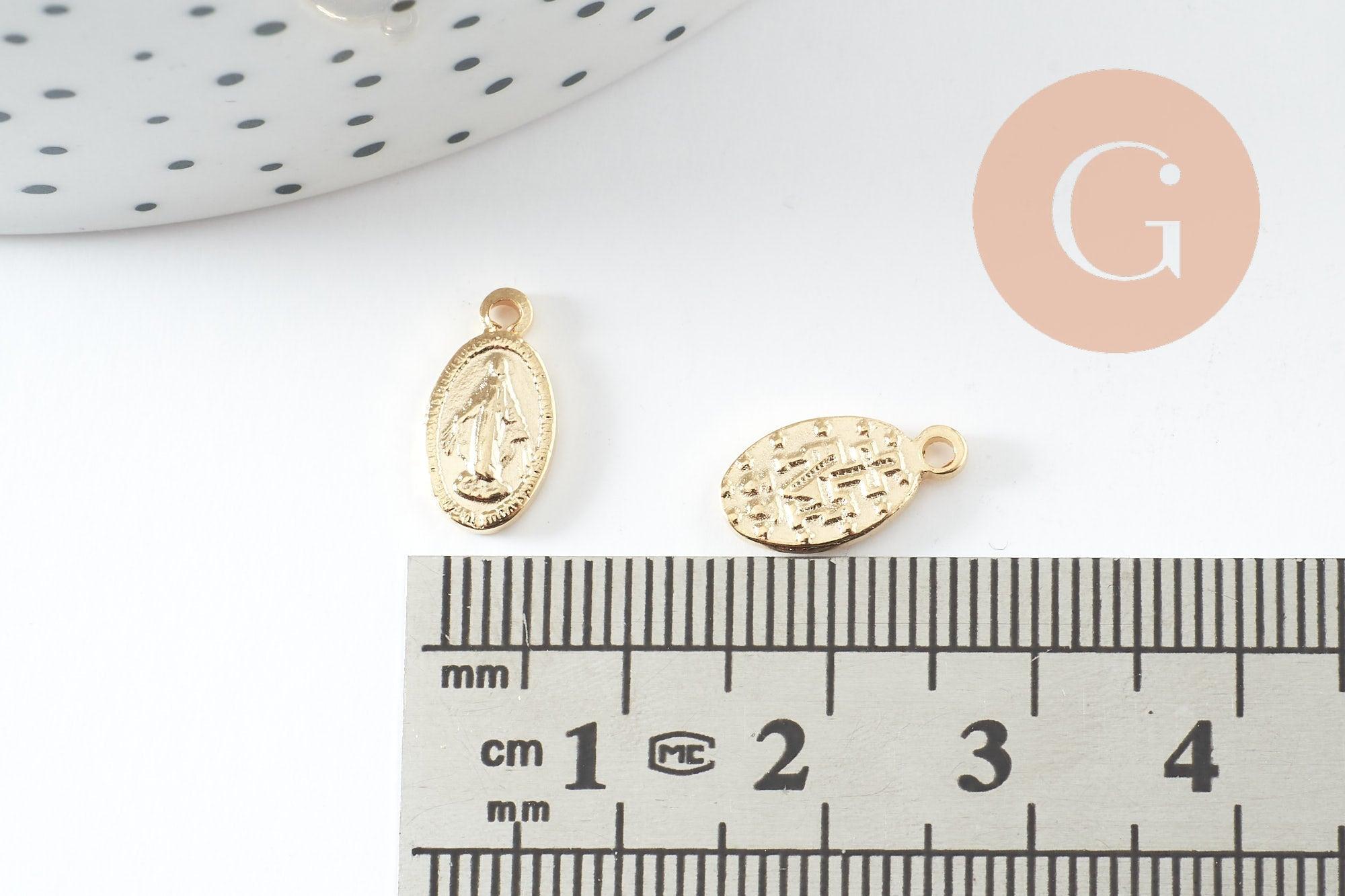 This gold-plated 304 stainless steel Miraculous Medal pendant is a symbolic and timeless piece. It depicts the Virgin Mary in a delicate oval shape, ideal for adding a spiritual touch to your jewelry.