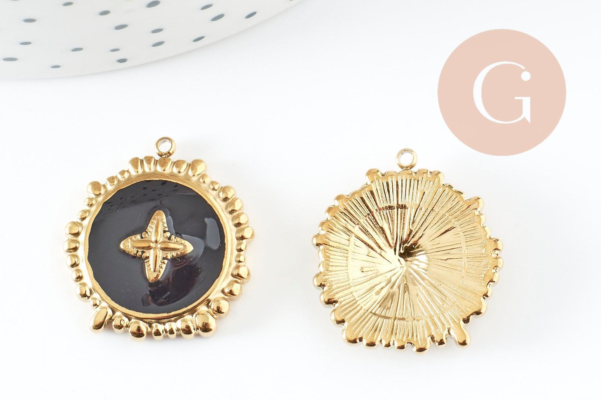 This 23mm pendant combines the durability of gold-tone stainless steel with the sophisticated aesthetic of black resin, providing a striking contrast and a nickel-free finish that is ideal for sensitive wearers. It is a perfect choice for those looking to create jewelry that is both modern and timeless.