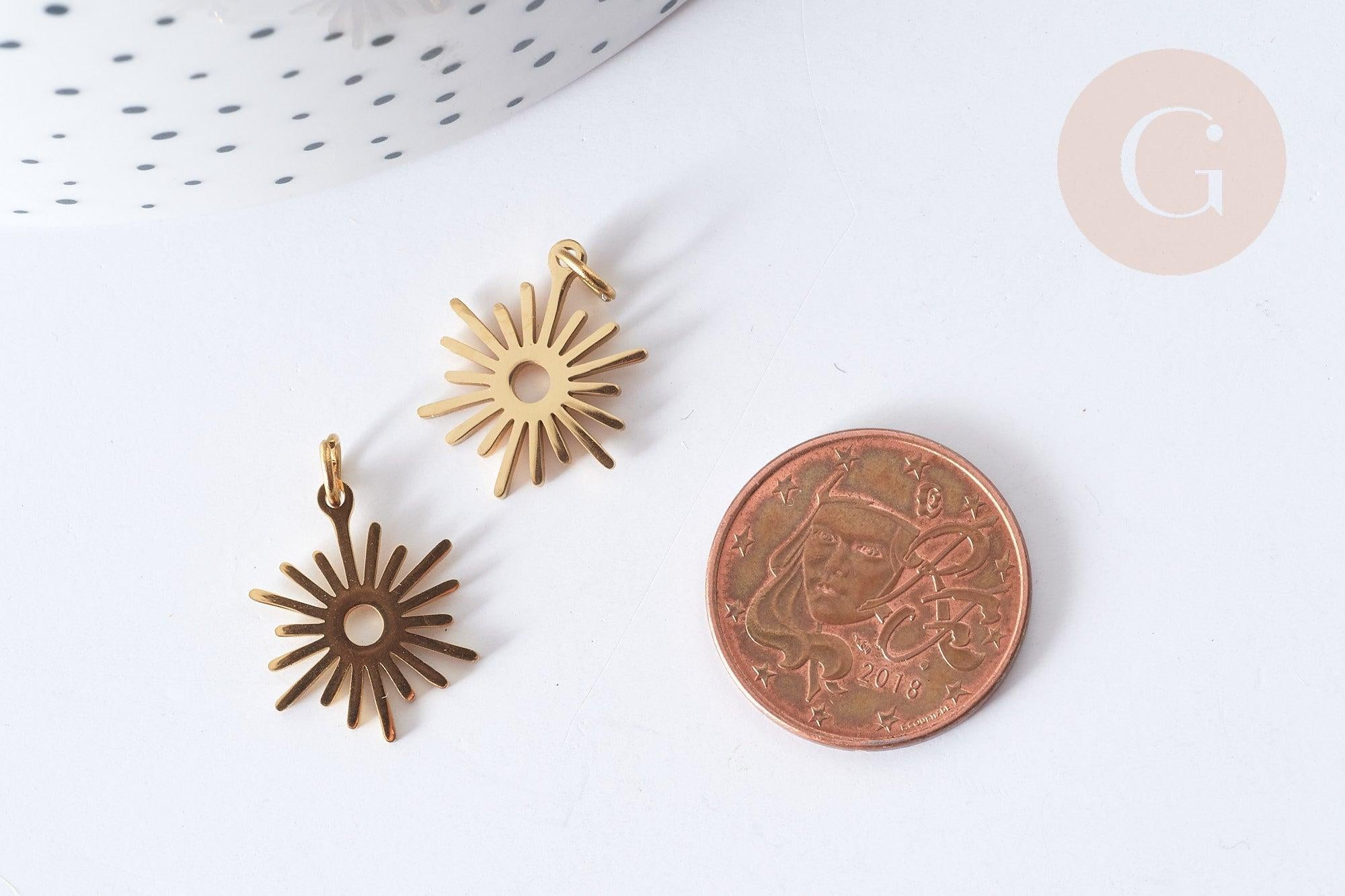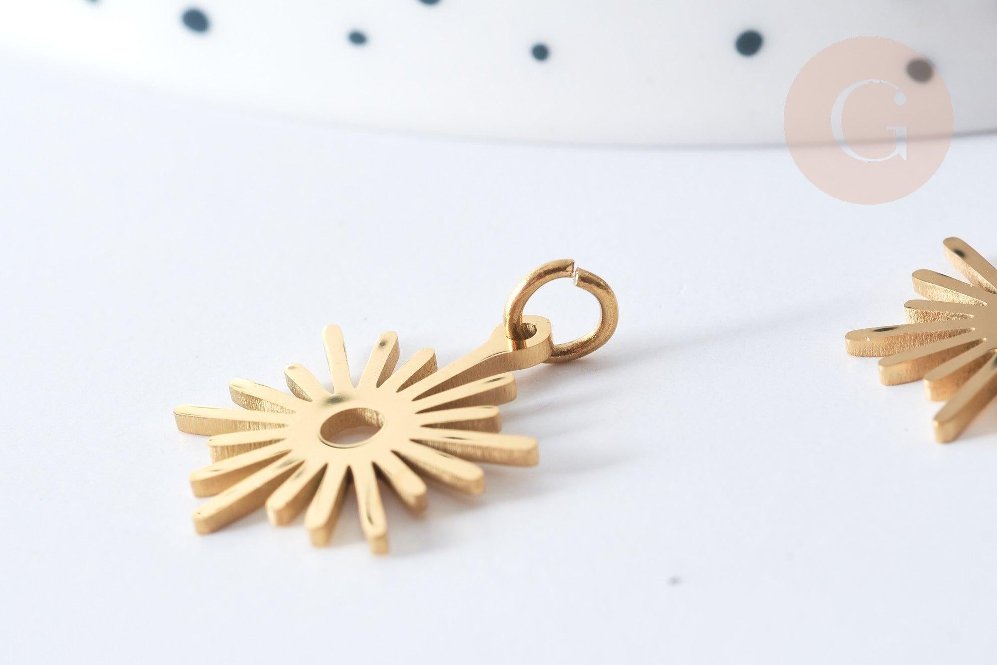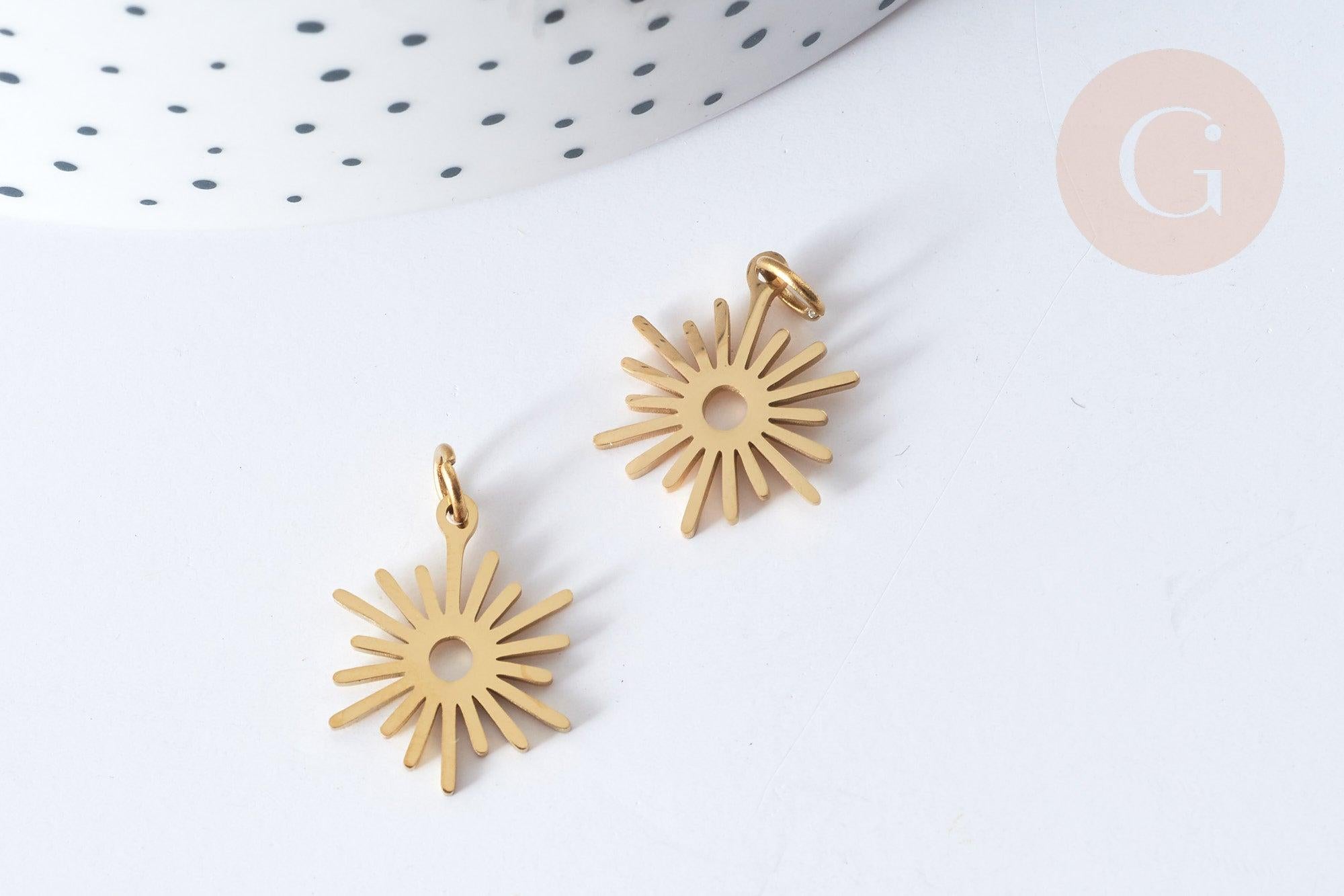 Bring a sunny and radiant touch to your DIY creations with this sun-shaped pendant in gold-plated 304 stainless steel . Lightweight, durable and trendy, it will enhance your necklaces, earrings or costume accessories.
