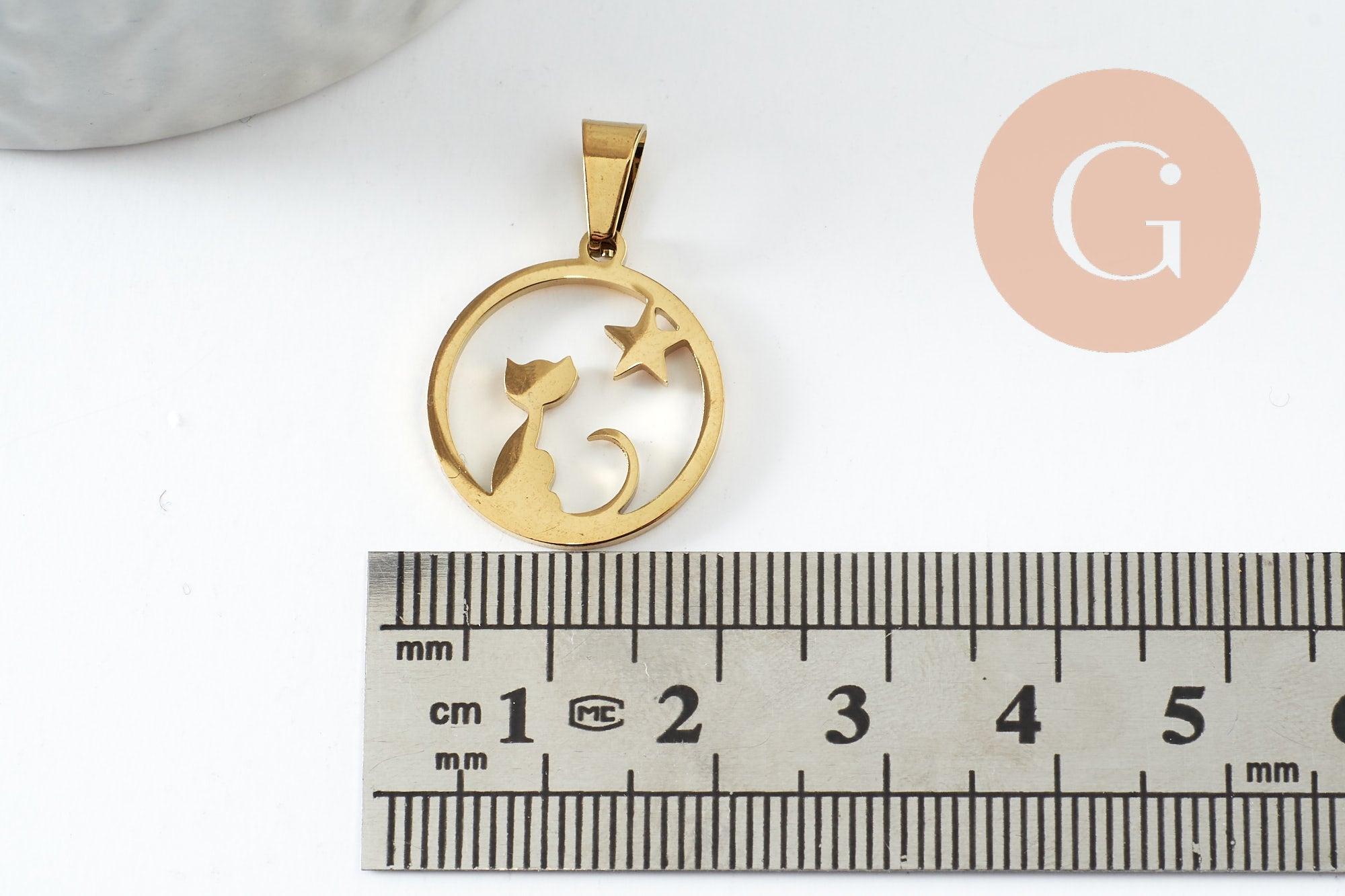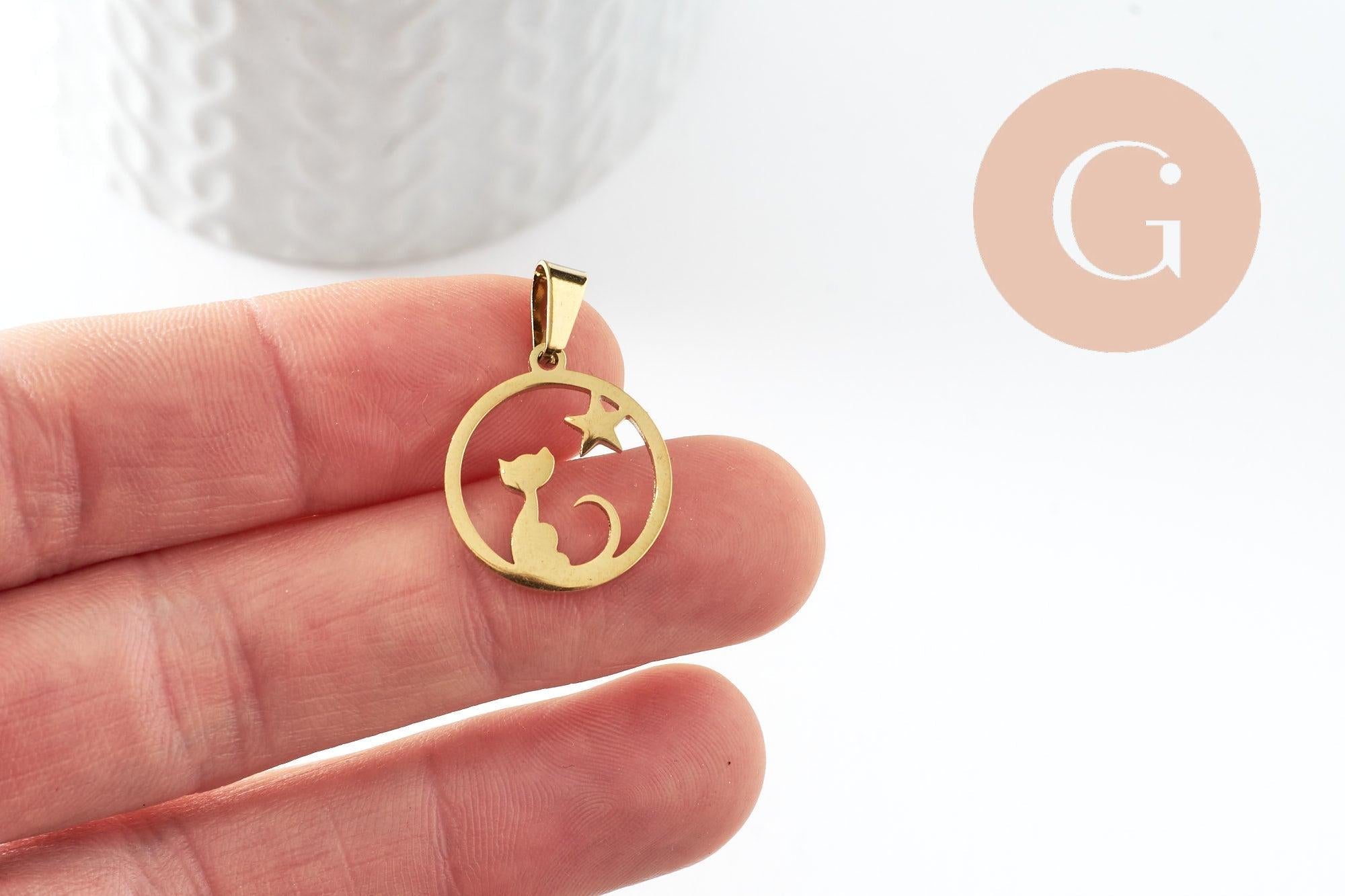 A lovely little pendant in the shape of a cat sitting under the stars , in 304 stainless steel