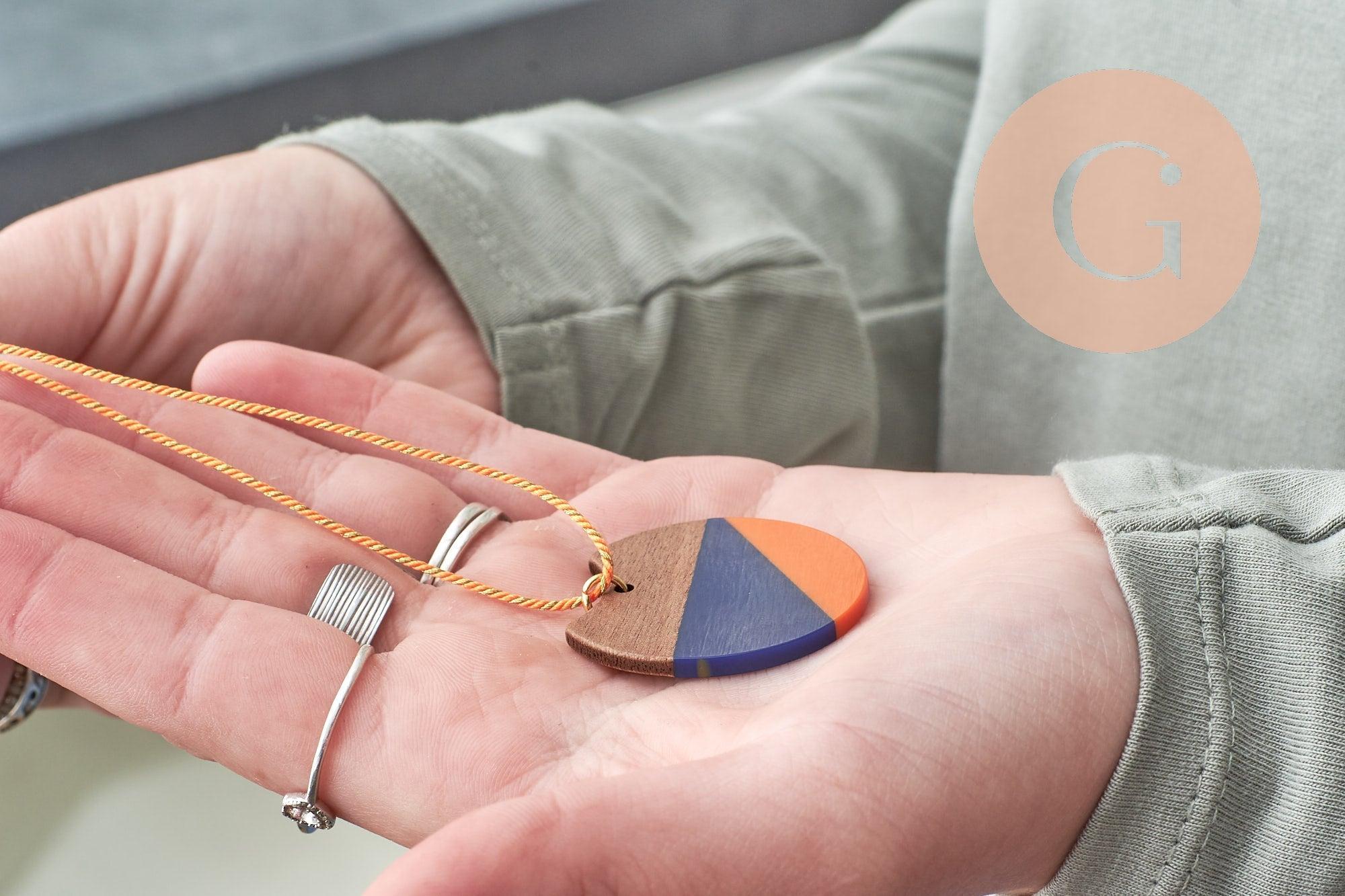 Pendants in walnut wood and blue and orange resin which can make very pretty pendants or complete earrings in a geometric and modern style.