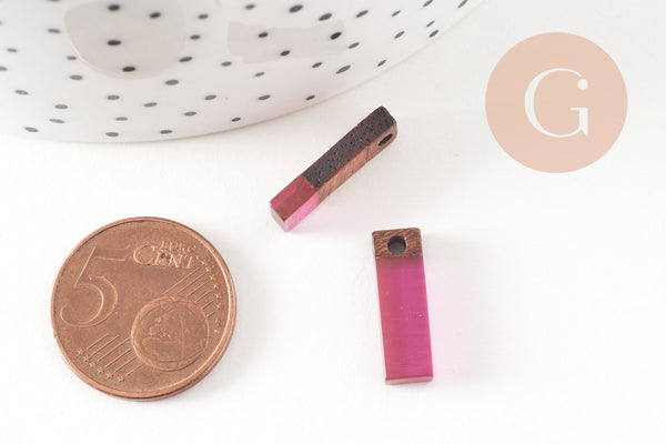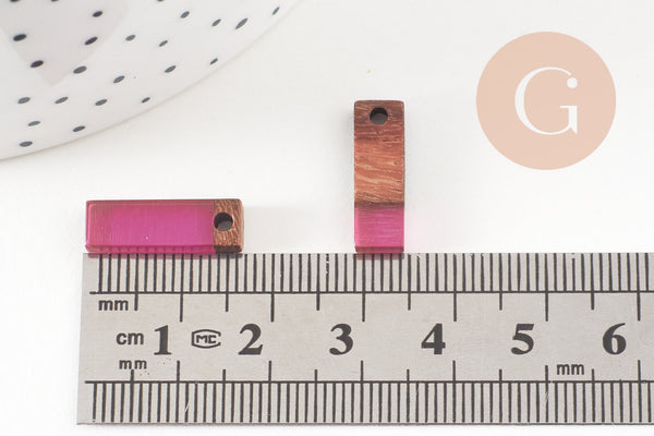 Rectangular beads with a very simple appearance, in wood and plum-purple resin which can make very pretty pendants or complete loops in a geometric spirit.